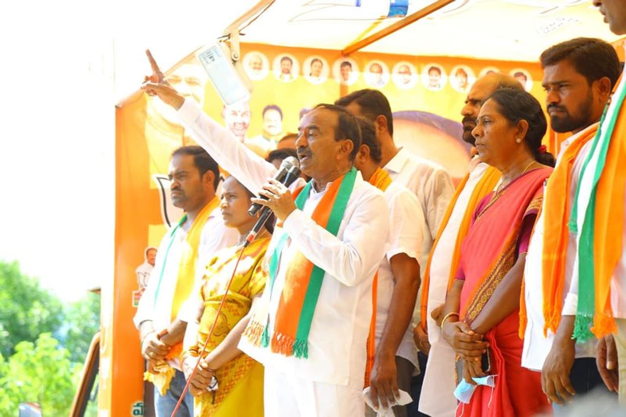 ''రాజేందర్ తల ఎత్తుతుండని నరకాలని చూస్తున్నారు. దళిత బంధు, గొర్లు, పెన్షన్, పావలా వడ్డీ 2017-18 నుండి రాలేదు... ఇప్పుడు ఎవరి వల్ల వచ్చాయో గుర్తు పెట్టుకోండి. నన్ను మర్చిపోకండి'' అని ఓటర్లను కోరారు ఈటల.