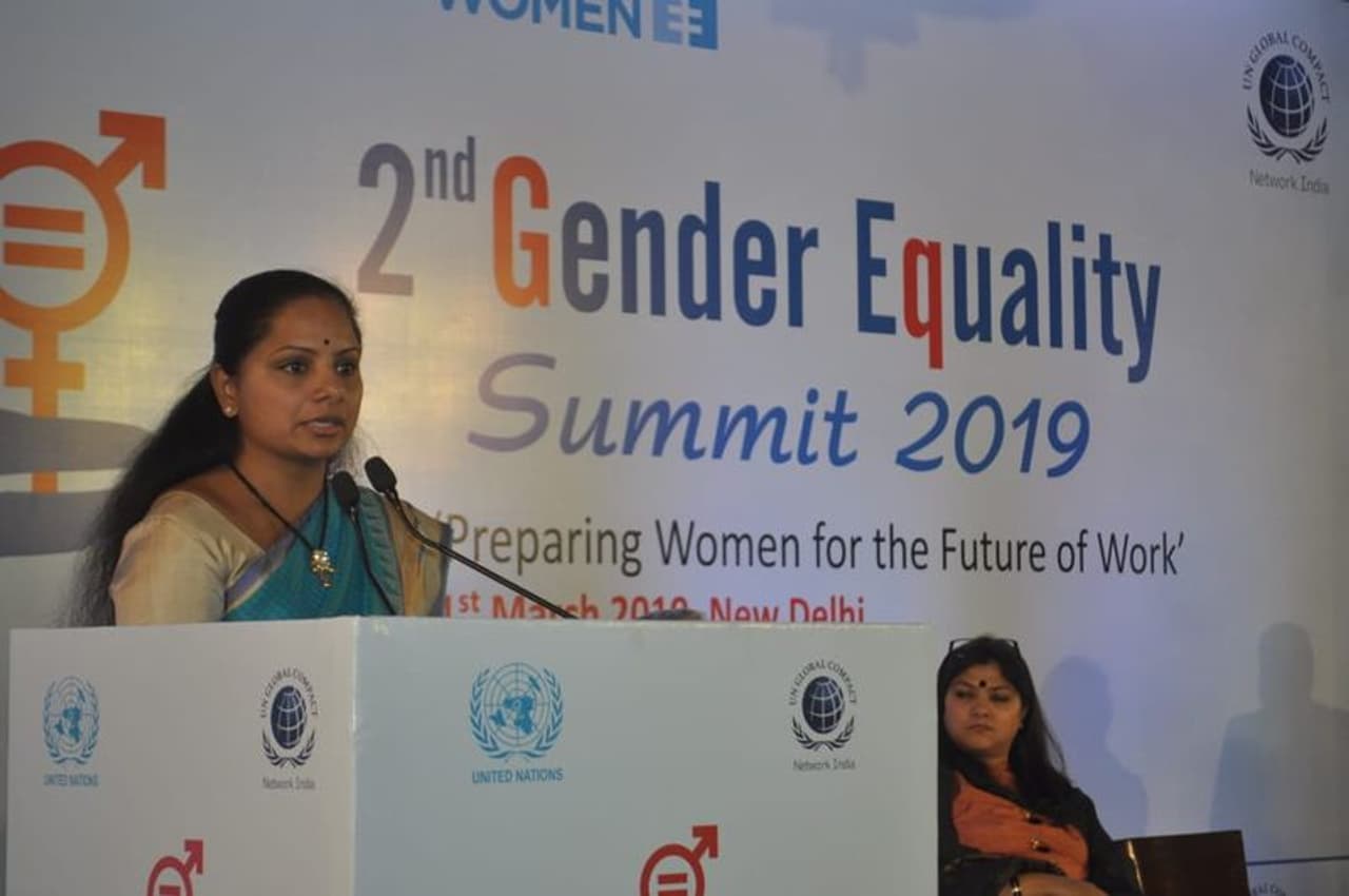 నిజామాబాద్ ఎంపీ కల్వకుంట కవిత మరో అరుదైన గౌరవాన్ని అందుకున్నారు. ఐక్యరాజ్య సమితి గ్లోబల్ కాంపాక్ట్ సంస్థ, గ్లోబల్ నెట్ వర్క్ ఇండియా సంయుక్తంగా నిర్వహించిన లింగ సమానత్వ సదస్సు (జిఈఎస్)లో కవిత పాల్గొన్నారు. ఈ సందర్భంగా ఆమె లింగ సమానత్వం, మహిళా వివక్షతపై సుధీర్ఘ ప్రసంగం చేశారు.
