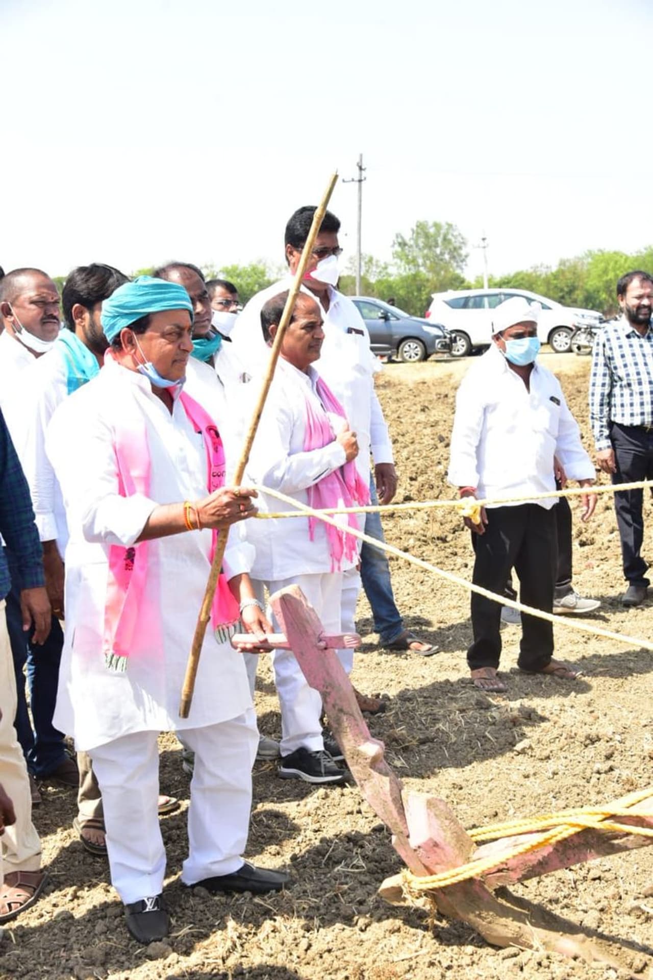రైతులకు కేసీఆర్ పిలుపు... సొంత పొలంలో స్వయంగా దుక్కి దున్నిన మంత్రి