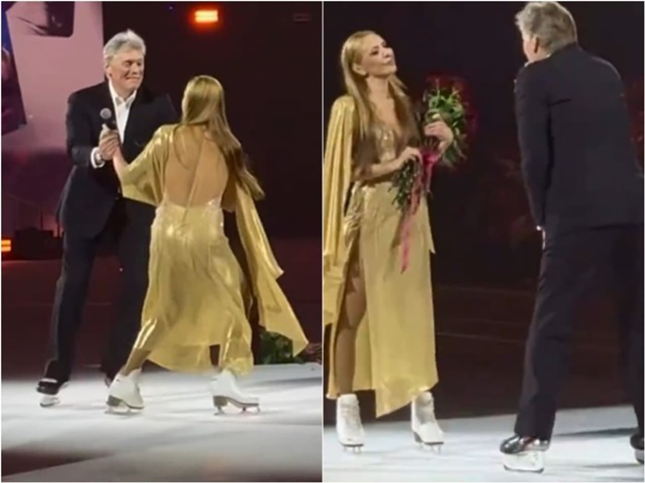ఇక స్కేటింగ్ ప్రదర్శన ముగిసిన తర్వాత, అతను తన భార్యకు అందమైన ఎర్ర గులాబీల పుష్పగుచ్ఛాన్ని అందించాడు. దీంతో వారి ప్రేమ కూడా ఆ పువ్వులు వలే పరిపూర్ణమైన ప్రేమ వికాసాన్ని జోడించింది. ఆ జంట కలిసి గ్లైడింగ్, డ్యాన్స్ చేస్తున్న వీడియోలు రష్యన్ సోషల్ మీడియా ప్లాట్ఫామ్లలో వైరల్ అయ్యాయి. చాలా మంది ఈ జంట కెమిస్ట్రీని చూసిన అందరూ పెస్కోవ్ ఉత్సాహాన్ని ప్రశంసించారు. రష్యాలో రాజకీయాల వల్ల గుర్తింపు పొందిన జంటగా పేరు తెచ్చుకున్న పెస్కోవ్, నవ్కా ఇలా రొమాంటిక్గా ఒకరిపై ఒకరు ప్రేమ చూపించుకోవడంతో భార్యభర్తల మధ్య ఉండే ఆప్యాయత, ప్రేమను తెలియజేసిందని ఈ దంపతుల వీడియో చూసిన పలువురు నెటిజన్లు కామెంట్లు చేస్తున్నారు.