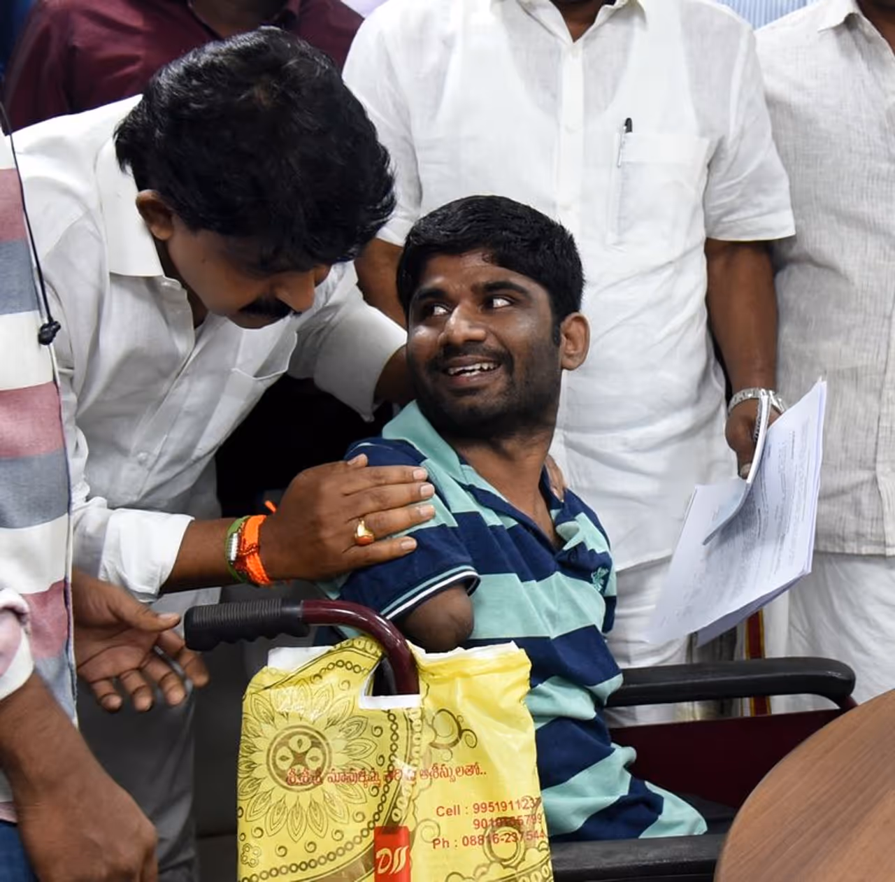 రెండు కాళ్ళు, చేతులు లేకుండా నిస్సహాయ స్థితిలో వున్న ఆ యువకుడికి ముఖ్యమంత్రి సహాయ నిధి నుండి 5 లక్షల రూపాయల ఆర్థిక సాయం అందించారు. దీంతో అతడు ఇతరులపై ఆధారపడకుండా స్వతహాగా ఆత్మగౌరవంతో బ్రతికే ఏర్పాటు చేశారు.