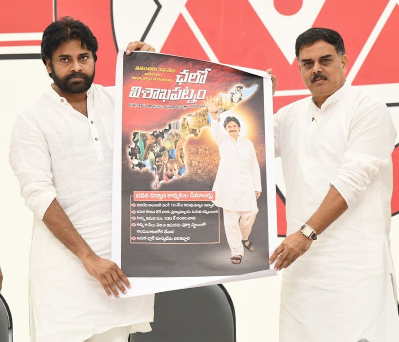 ఇందులో అన్ని వర్గాల ప్రజలతో పాటు ప్రజాసంఘాలు, కార్మిక సంఘాలు పాల్గొనాలని పవన్ సూచించారు. జనసేన పార్టీ చేపడుతున్నఈ యాత్రను విజయవంతం చేసి కార్మికులను మద్దతు తెలపాలన్నారు. ఈ మేరకు ఛలో విశాఖ పట్నం పోస్టర్ ను పవన్ విడుదల చేశారు.