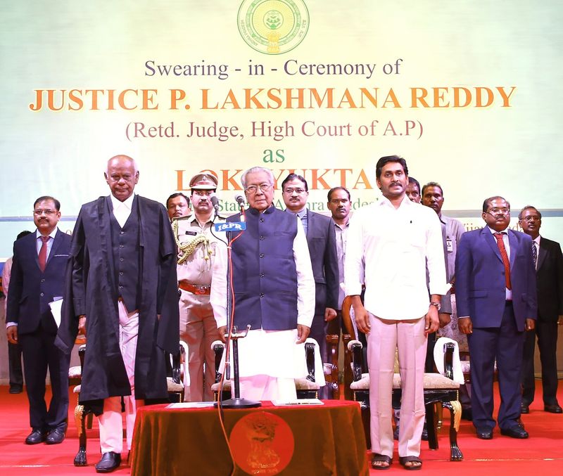 హైదరాబాద్:ఏపీ లోకాయుక్తగా రిటైర్ట్ జస్టిస్ లక్ష్మణ్ రెడ్డి ఆదివారం నాడు ప్రమాణం చేశారు. ఏపీ గవర్నర్ విశ్వభూషణ్ హరిచందన్ లక్ష్మణ్ రెడ్డి ప్రమాణం చేయించారు.ఏపీ లోకాయుక్తగా రిటైర్ట్ జస్టిస్ లక్ష్మణ్ రెడ్డి ప్రమాణ కార్యక్రమంలో సీఎం వైఎస్ జగన్ కూడ పాల్గొన్నారు.