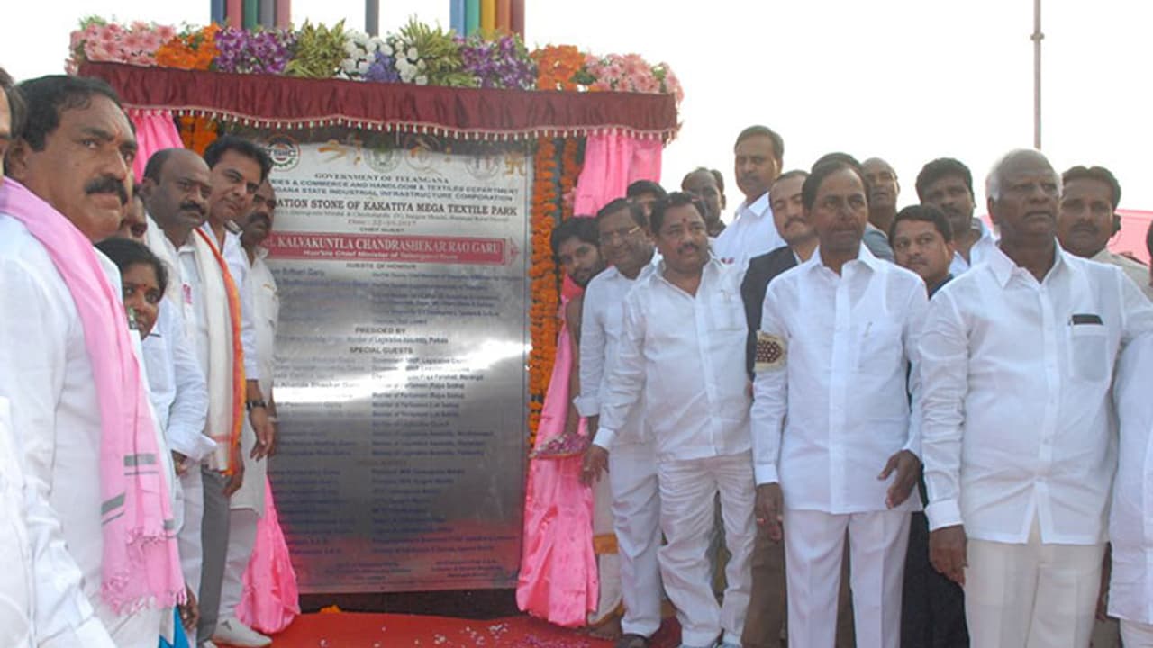 కాకతీయ టెక్స్ టైల్ పార్క్ కు శంకుస్థాపన చేసిన సీఎం కేసీఆర్ పరకాలను రెవెన్యూ డివిజన్ గా చేస్తామని హామీ వరంగల్ అభివృద్దికి కట్టుబడి ఉంటానన్న సీఎం టెక్స్ టైల్ పార్కు వల్ల లక్ష ఉద్యోగాలు