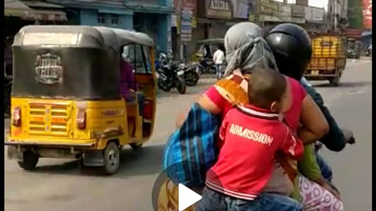 ట్రాఫిక్ పోలీసులు, ప్రభత్వ ఎన్ని నిబంధనలు పెట్టినా నగర వాసుల్లో మార్పు రావడం లేదు. ఇటీవల హెల్మెట్ లేకుండా, డ్రంకన్ డ్రైవ్ చేసి ఏంతో మంది ప్రాణాలు కోల్పోయిన ఘటనలు చాలా చూశాం. కానీ ఈ కింది వీడియోలోని వాహనదారుడిది మరో రకమైన ట్రాపిక్ ఉల్లంఘన. హైదరాబాద్ రోడ్లపై ఈ వాహనదారుడు ఓ చిన్నారిని ఇలా బైక్ వెనకాల కూర్చోబెట్టి ఎంత నిర్లక్ష్యంగా వ్యవహరిస్తున్నాడో చూడండీ. అసలు ట్రిపుల్ రైడింగే నేరం అనుకుంటే ఇలా చిన్నారిని కూర్చోబెట్టి ప్రమాదకరంగా డ్రైవింగ్ చేశాడు. ఈ దృశ్యాలను ఈ బైక్ వెనకాల ఉన్న వాహరదారులు వీడియో తీసి సోషల్ మీడియాలో పెట్టారు. దీంతో ఈ నిర్లక్ష్యపు బైక్ డ్రైవర్ పై నెటిజన్లు మండిపడుతున్నారు.