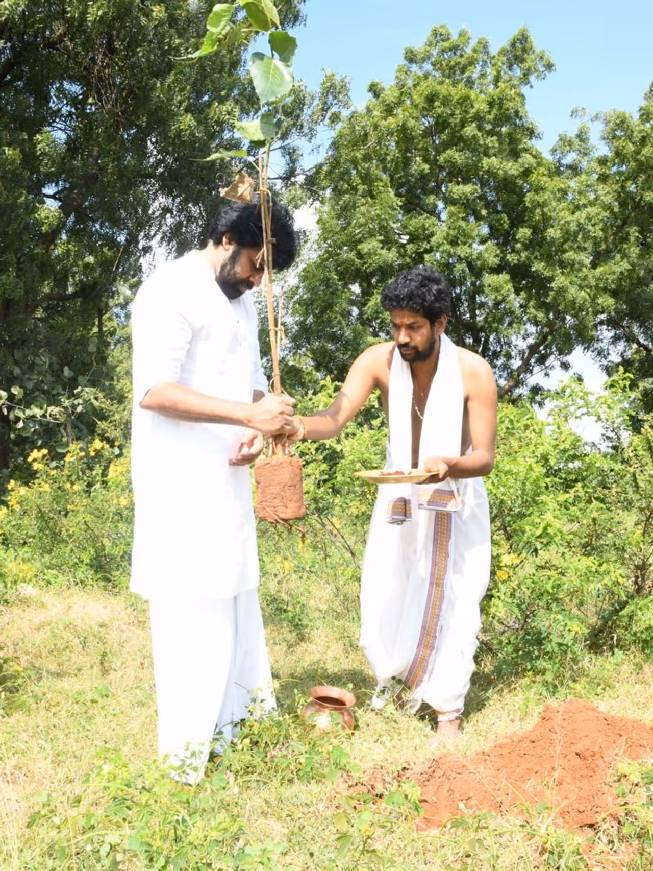 వన రక్షణ కార్యక్రమానికి ముందు శాస్త్రోక్తంగా పూజాదికాలు నిర్వహించారు. పవన్ కల్యాణ్ స్వయంగా భూమాతను పూజించి పృథ్వీ సూక్తం పఠించి మొక్కలు నాటే కార్యక్రమానికి అంకురార్పణ చేశారు.