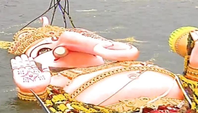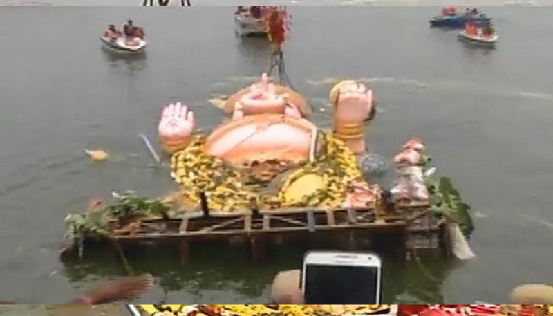 ఈ భారీ వినాయకుడిని చివరి సారిగా చూసేందుకు భారీగా భక్తులు హుస్సేన్ సాగర్ కు తరలి వచ్చారు. హుస్సేన్ సాగర్ పైన ఏర్పాటు చేసిన ఆరో నెంబర్ క్రేన్ వద్ద ఈ విగ్రహన్ని నిమజ్జనం చేశారు.