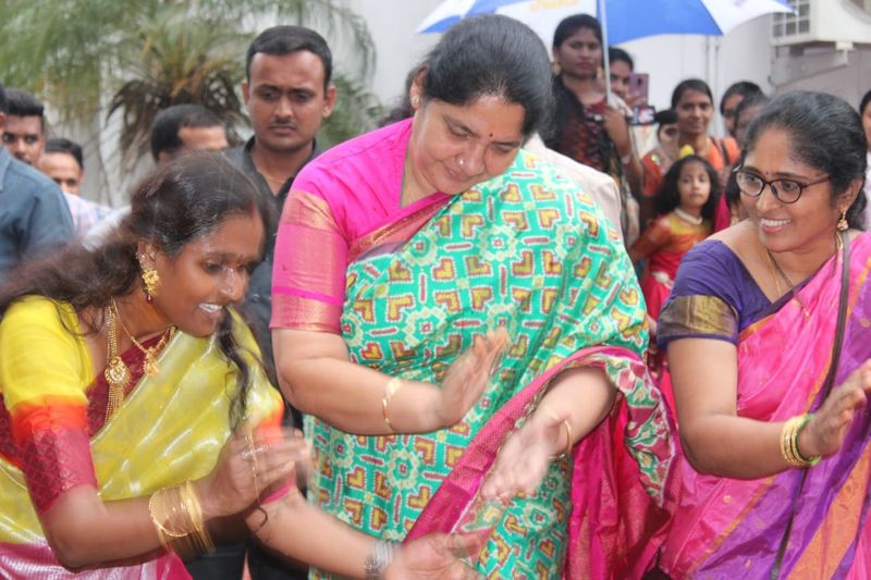 అటు టీఆర్ఎస్ మహిళా విభాగం ఆధ్వర్యంలో తెలంగాణ భవన్లో బతుకమ్మ వేడుకల్లోనూ సత్యవతి పాల్గొన్నారు. బతుకమ్మను పేర్చి, అందులో గౌరమ్మను ఉంచి పాటలు పాడుతూ చిందులేశారు.