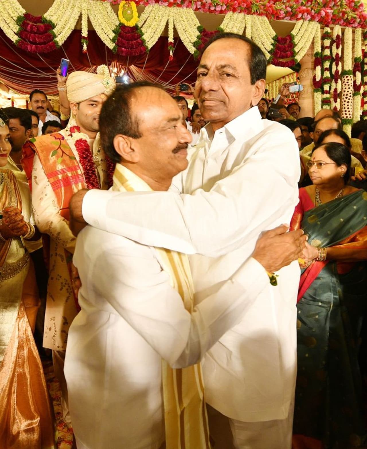 సీఎం వెంట మంత్రులు జగదీష్ రెడ్డి, ఎంపీలు జోగినిపల్లి సంతోష్ కుమార్, రంజిత్ ఉన్నారు. 2017 జూన్లో ఈటల కుమారు నితిన్ వివాహం క్షమితతో మాదాపూర్లోని హైటెక్స్లో జరిగిన సంగతి తెలిసిందే.