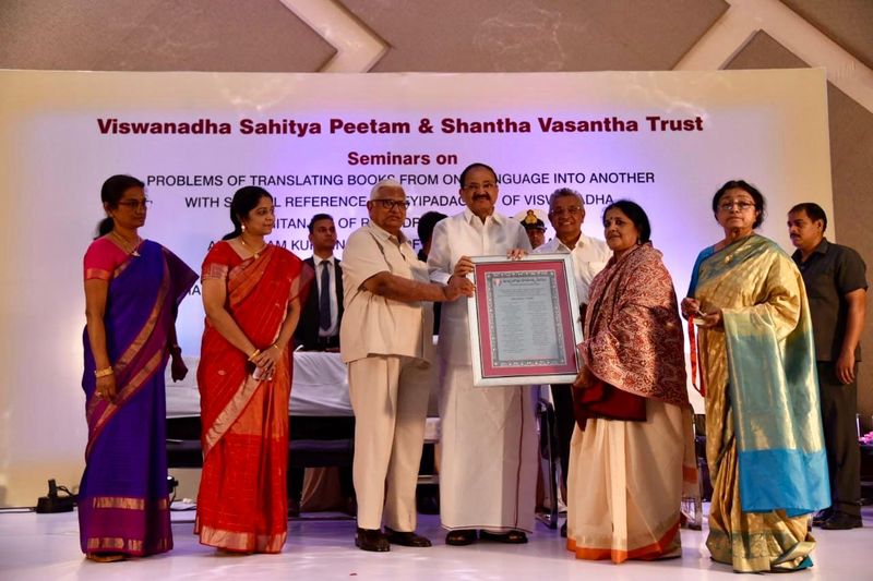 బుధవారం హైదరాబాద్లోని సైబర్ కన్వెన్షన్ సెంటర్లో జరిగిన కార్యక్రమంలో ఉపరాష్ట్రపతి వెంకయ్య నాయుడు పాల్గొన్నారు. ఈ సందర్భంగా కవి సామ్రాట్ విశ్వనాథ సత్యనారాయణ రచించిన ప్రసిద్ధ నవల ‘వేయిపడగలు’ ఆంగ్ల అనువాదం ‘ థౌజంట్ హుడ్స్’ను ఉపరాష్ట్రపతి ఆవిష్కరించారు.