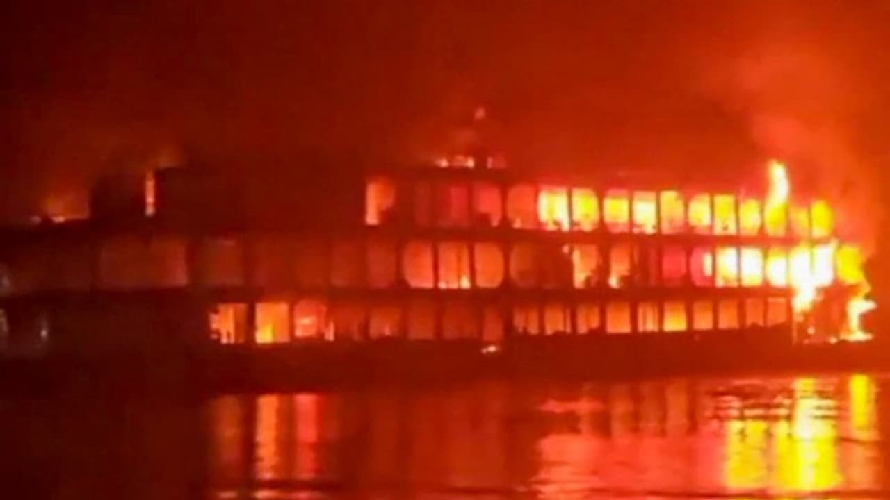 చిన్న పడవలలో ఉన్న సిబ్బంది చీకట్లో ప్రయాణీకులను రక్షించడం, కోస్ట్ గార్డ్ నౌకలు మండుతున్న ఫెర్రీపై నీటిని చల్లడం ఫొటోల్లో కనిపిస్తోంది.