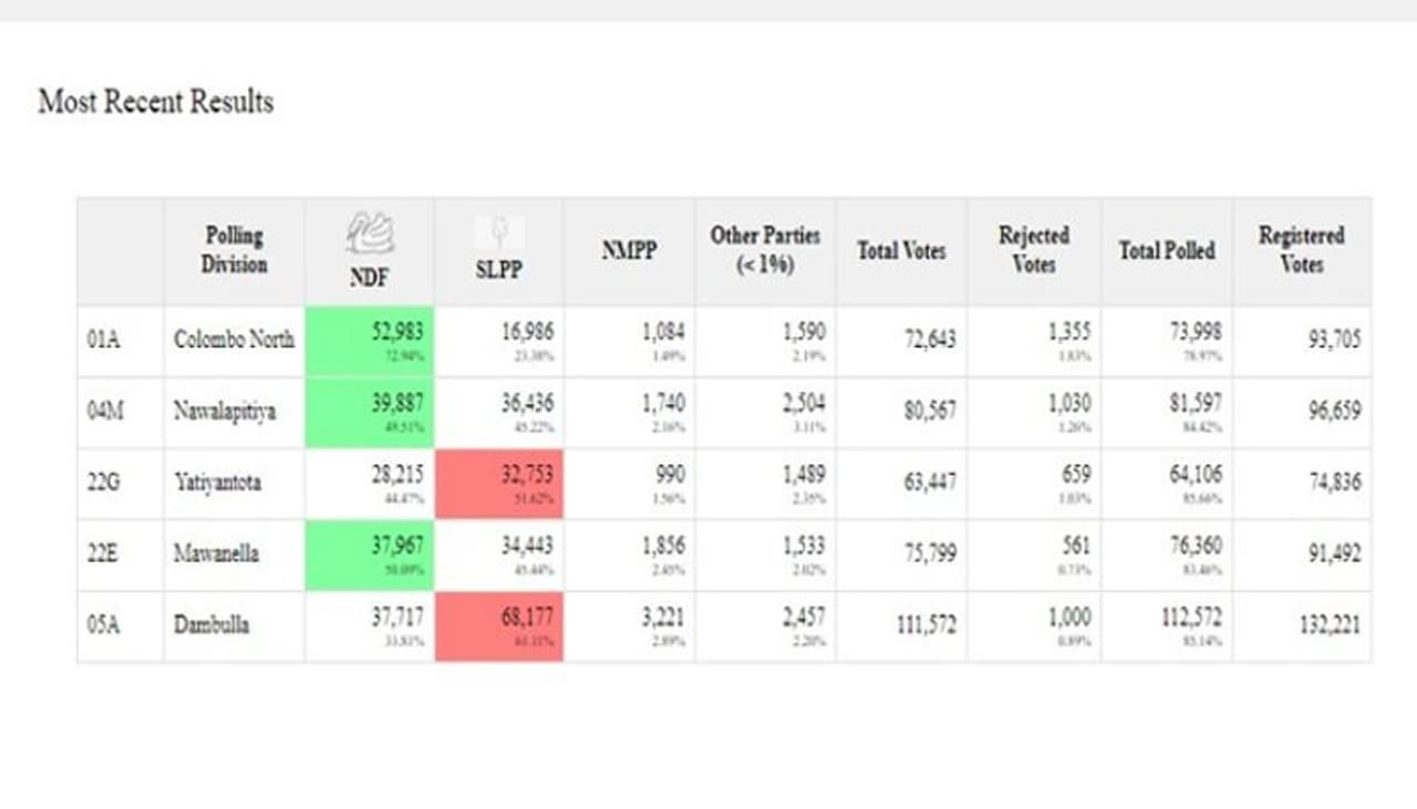 ఆదివారం ఉదయం 11 గంటల వరకూ లెక్కించిన ఐదు లక్షల ఓట్లలో రాజపక్స 52.87 శాతం ఓట్లు పొలవగా, సమీప ప్రత్యర్థి మంత్రి సజిత్ ప్రేమదాసకు 39.67 శాతం ఓట్లు పోలయ్యాయి. మరో లెఫ్ట్ అభ్యర్థి అనుర కుమార దిస్సానాయకే కు 4.69 శాతం ఓట్లు పోలయినట్టు శ్రీలంక ఎలక్షన్ కమిషన్ వెబ్ సైట్ లో ప్రకటించింది.