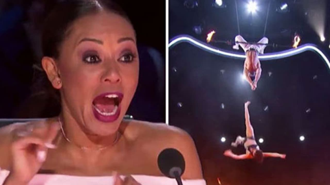 అమెరికాస్ గాట్ ట్యాలెంట్’ మంగళవారం ఎడిషన్లో టైసీ నీల్సన్, మేరీ వోల్ఫీ నీల్సన్ దంపతులు ట్రపెజె విన్యాసాలు చేశారు. ట్రపెజె అంటే తాళ్లతో వేలాడదీసిన ఓ కర్రపై విన్యాసాలు చేయడం. వీరి విన్యాసాలు చూసి అక్కడున్న న్యాయ నిర్ణేతలు, ప్రేక్షకులు చప్పట్లు కొడుతూ ప్రోత్సహించారు. అంతా బాగానే ఉంది అనుకునేలోపు వోల్ఫీ పట్టుతప్పి కిందపడిపోయింది. విన్యాసంలో భాగంగా టైసీ.. వోల్ఫీ నీల్సన్ను కిందకు జారవిడిచి ఆమె చేతులు పట్టుకోవాలి. అయితే ఆ సమయంలో టైసీ పట్టు కోల్పోవడంతో వోల్ఫీ కిందపడిపోయింది. దీంతో అక్కడున్న వారంతా ఒక్కసారిగా షాక్కి గురయ్యారు. ఆమెకు ఏమైందోనని గట్టిగా అరిచారు. అదృష్టమేంటంటే.. కింద మెత్తని పరుపు ఉండటంతో వోల్ఫీకి ఎలాంటి గాయాలు కాలేదు.