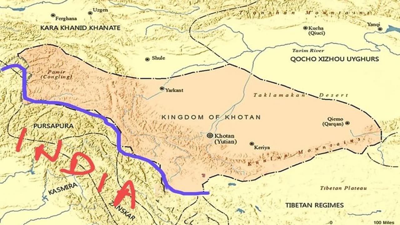 Khotan-Indian Sanskritic outpost: ప్రస్తుతం చైనాలోని జిన్జియాంగ్ ప్రాంతంలోని హోతాన్ ప్రిఫెక్చర్లో ఉన్న ఖోటాన్ అనే పురాతన రాజ్యం ఒకప్పుడు భారతీయ సంస్కృతికి ఒక ముఖ్యమైన అవుట్ పోస్టుగా ఉండేది. చిన్నదైనప్పటికీ.. ముఖ్యమైన రాజ్యంగా.. క్రీస్తుపూర్వం అనేక శతాబ్దాల పాటు వర్ధిల్లింది. క్రీ.శ మొదటి సహస్రాబ్దిలో, దాని పశ్చిమ-తూర్పు వైపు మరింత శక్తివంతమైన రాజ్యాల వలసలు, దండయాత్ర-ఆధిపత్య పోరును తట్టుకుని నిలబడింది. ఖోటాన్ ట్రాన్స్-యురేషియన్ వాణిజ్య మార్గాలలో ఒయాసిస్ గా ప్రసిద్ధి చెందింది. దాని పట్టు ఉత్పత్తి, జేడ్ కు ప్రసిద్ధి చెందింది. ఒయాసిస్ నగరం 1006 లో ముస్లిం కారా-ఖనిద్ ఖానేట్ చేత జయించబడటానికి ముందు వెయ్యి సంవత్సరాలకు పైగా అభివృద్ధి చెందింది, ఇది జిన్జియాంగ్ ఇస్లామీకరణ, టర్కికీకరణకు దారితీసింది. అయితే, క్రీస్తుపూర్వం మొదటి శతాబ్దంలోనే ఈ ప్రాంతంలో అభివృద్ధి చెందుతున్న బౌద్ధ సంస్థలు స్థాపించడంతో భారతదేశం నుండి చైనాకు బౌద్ధమతం వ్యాప్తి చెందడంలో ఖోటాన్ ముఖ్యమైన పాత్ర పోషించారు.