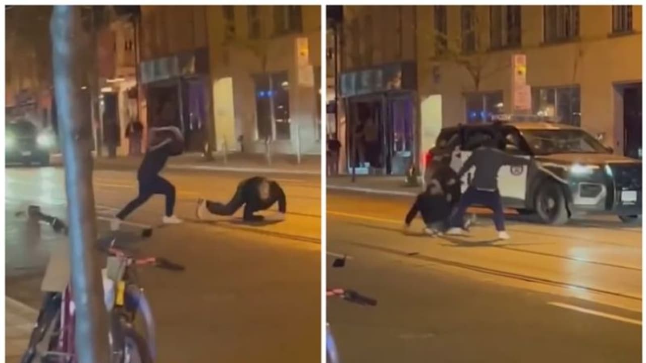 కెనడాలోని టొరంటోలో దుందాస్ స్ట్రీట్ వెస్ట్, మానింగ్ అవెన్యూ ఏరియాలో ఇద్దరు వ్యక్తులు పోట్లాడుకుంటూ కనిపించారు. ఈ విషయాన్ని పోలీసులకు స్థానికులు తెలియజేశారు. ఇద్దరిలో ఒకరు ఉన్నట్టుండి కొండ చిలువ పామును ఆయుధంగా మలుచుకుని మరో వ్యక్తిపై దాడి చేయడం ప్రారంభించాడు. ఎదుటి వ్యక్తి భయపడుతూ కిందపడిపోయాడు. ఆ పాము నుంచి కాపాడుకోవడానికి ప్రయత్నించాడు. తనను తాను కాపాడుకునే ప్రయత్నం చేస్తూనే కిందపడిపోయాడు. అంతలోనే అక్కడికి పోలీసుల కారు వచ్చింది.