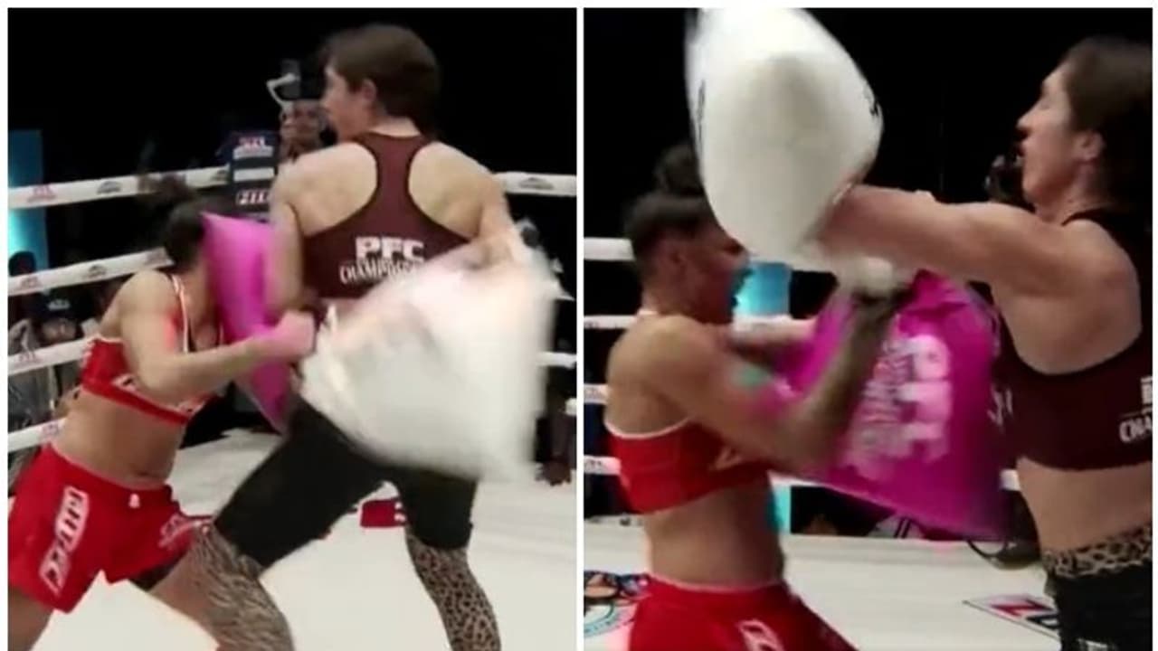 అమెరికాలోని ఫ్లోరిడాలో పిల్లో ఫైటింగ్ చాంపియన్షిప్ నిర్వహించారు. ఇందులో మహిళ, పురుషుల విభాగాలు ఉన్నాయి. మహిళల విభాగంలో బ్రెజిల్కు చెందిన ఇస్టెలా న్యూన్స్.. అమెరికాకు చెందిన కెండాల్ వోల్కర్ను ఓడించి టైటిల్ గెలుచుకున్నారు. కాగా, పురుషుల విభాగంలో అమెరికాకు చెందిన హాలీ తిల్మన్ టైటిల్ సాధించారు. వారికి టోర్నమెంట్ నిర్వాహకులు టైటిల్స్ అందించారు.