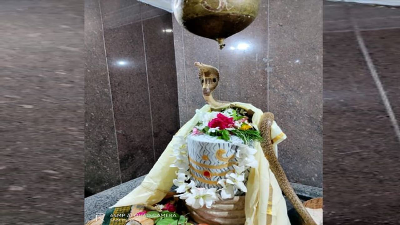 జగిత్యాల జిల్లా మల్లాపూర్ మండలంలోని కుస్తాపూర్ గ్రామంలో పవిత్ర శ్రావణమాసం రోజునే అద్భుత ఘటన చోటుచేసుకుంది. ఆ పరమశివుని మెడలో నాగాభరణం మాదిరిగా శ్రీ రామలింగేశ్వర ఆలయ గర్భగుడిలో శివలింగంపై నాగుపాము దర్శనమిచ్చింది. శ్రావణ మాసం 3వ సోమవారమే ఈ అరుదైన ఘటన చోటుచేసుకోవడంతో ఈ వింతను చూసేందుకు భక్తులు ఆలయానికి భారీగా విచ్చేశారు. గర్భగుడిలో శివలింగంపై ఉన్న నాగుపాము స్వయంగా ఈ మహాశివుడి నాగాభరణంగా భావించి ప్రత్యేక పూజలు నిర్వహించారు.