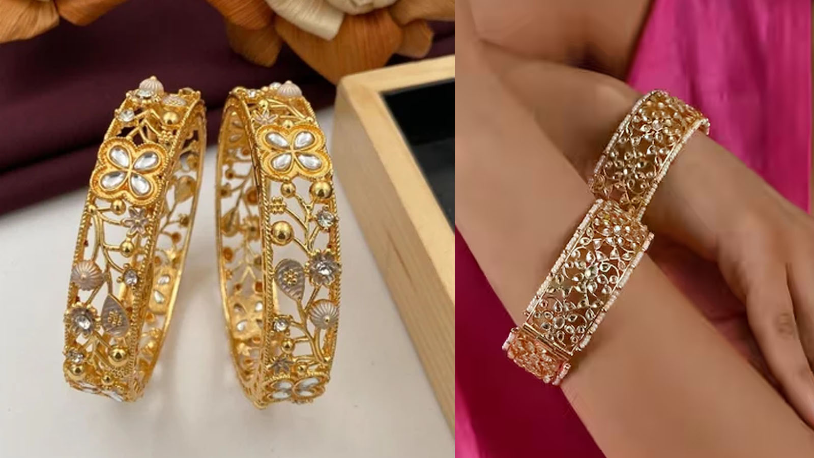 తక్కువ బడ్జెట్ లో హెవీ గా, స్టైలిష్ గా కనిపించే బంగారు గాజుల కోసం వెతుకుతున్నారా? ఇక్కడ మేము ఇచ్చిన డిజైన్లను ఎంపిక చేసుకుంటే ఈ బంగారు గాజులు తక్కువ ధరకే వస్తాయి. ఇవి చూసేందుకు ట్రెండీగా ఉంటాయి.