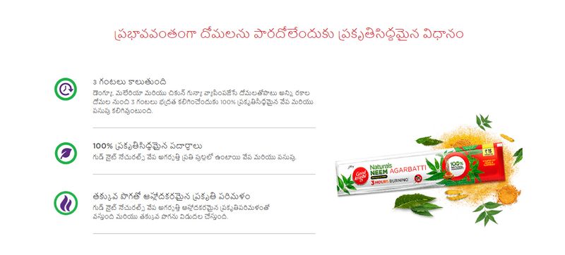 తయారుచేశారు. 100 శాతం సురక్షితమైన పధార్థాలతో దాదాపు 3 గంటల పాటు దోమల నుండి రక్షణ కల్పించేలా గుడ్ నైట్ నేచురల్ ను తయారుచేశారు.