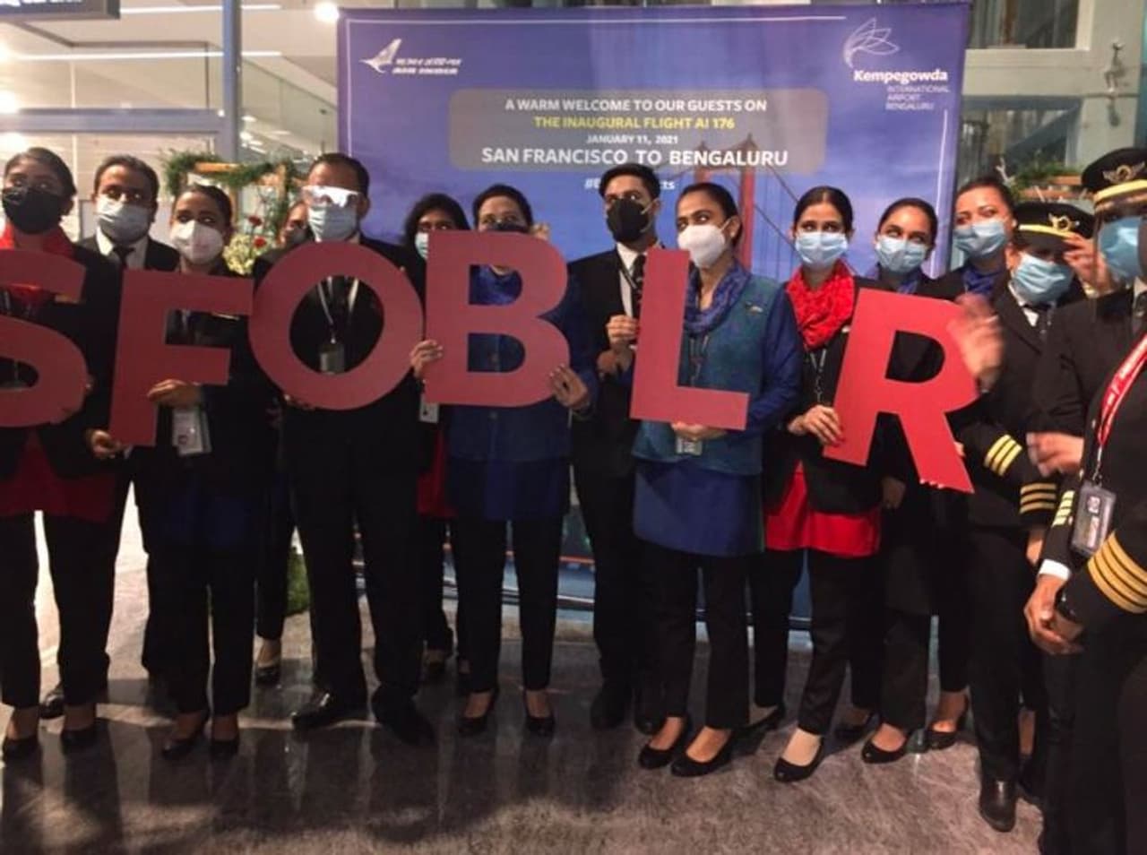 ఉత్తర ధ్రువం మీదుగా ప్రయాణించి బెంగళూరుకు సోమవారం ఉదయం చేరింది. శాన్ ఫ్రాన్సిస్కో- బెంగళూరుకు మధ్య సుదీర్ఘమైన 16 వేల కిలోమీటర్ల దూరం ప్రయాణించిన ఈ విమానాన్ని మహిళా పైలట్ల నడిపి చరిత్ర సృష్టించారు.
