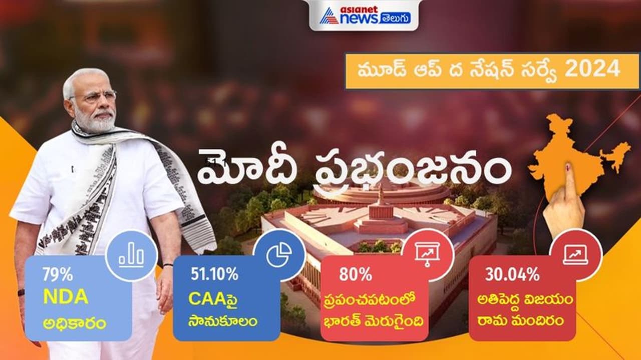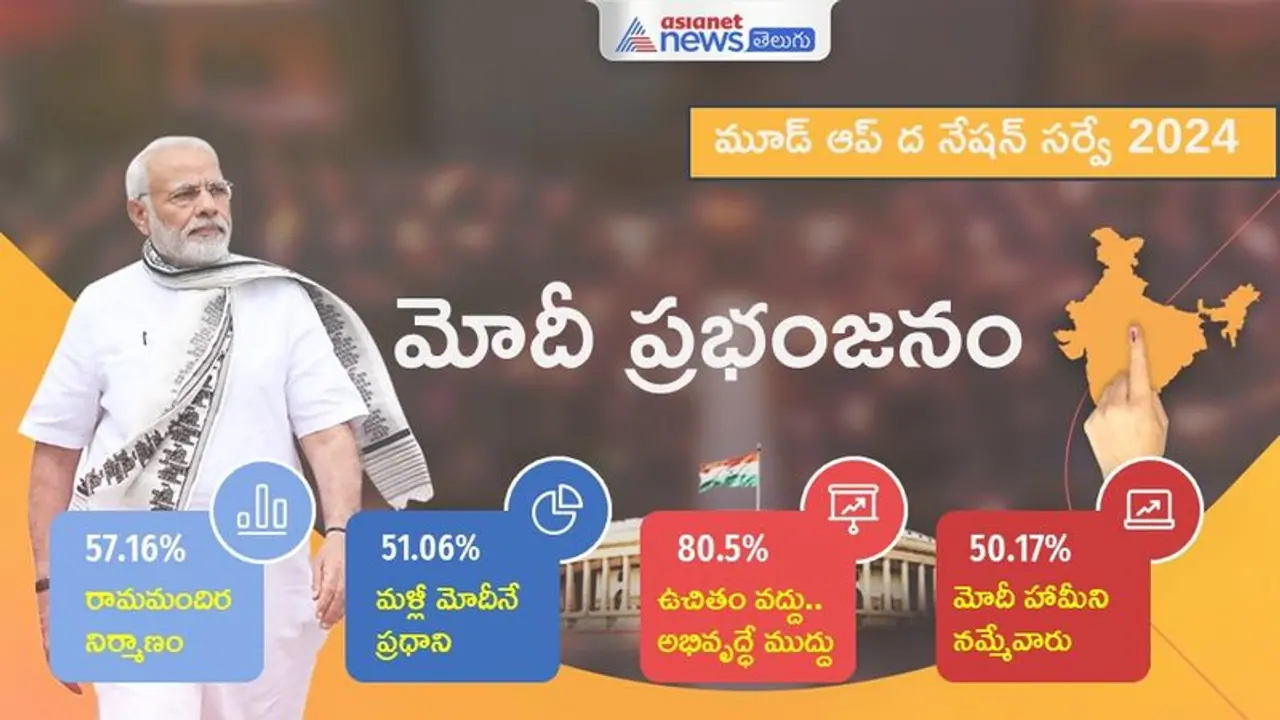 - భారత ప్రధాని అయ్యే అవకాశం మరోసారి నరేంద్ర మోదీకే ఉందని మూడ్ ఆఫ్ ది నేషన్ సర్వే తేల్చింది.