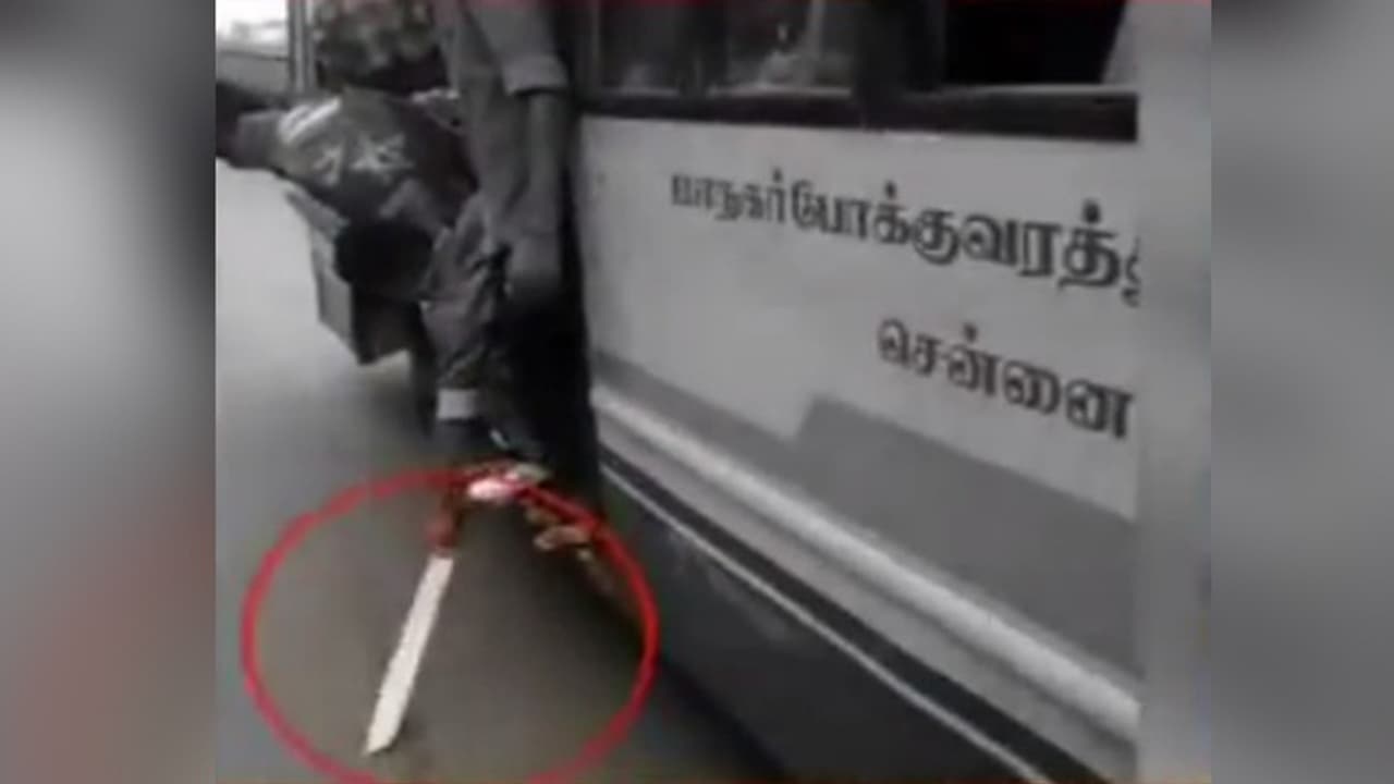 ఈ ఘటన చెన్నైలో చోటు చేసుకుంది. చెన్నైలోని ప్రెసిడెన్సీ కళాశాలలో ప్రథమ సంవత్సరం చదువుతున్న విద్యార్థులు వేట కత్తులతో బీభత్సం సృష్టించారు. కండక్టర్ ఎంత వారిస్తున్నా వినకుండా ఫుట్ పాత్ ప్రయాణం చేస్తూ రోడ్లపైకి కత్తులు గీస్తూ నానా హంగామా చేశారు.