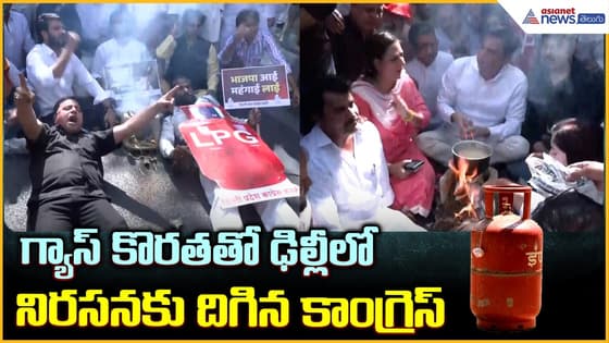 గ్యాస్ కొరత తో ఢిల్లీలో నిరసనకు దిగిన కాంగ్రెస్: LPG Cylinder Shortage | Asianet News