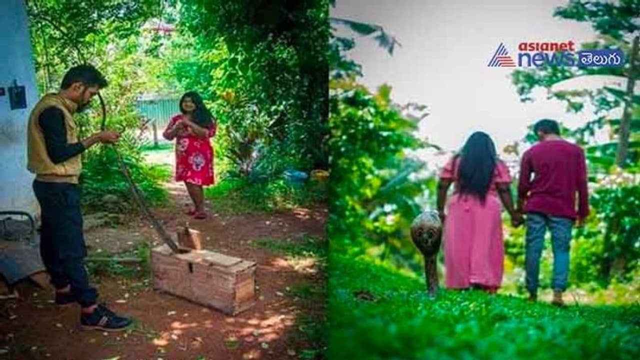 తమ ప్రీ వెడ్డింగ్ షూట్ లో పామును కూడా కలిపారు. పాము కారణంగా ఆ జంట ఒక్కటైనట్లుగా వీడియో చిత్రీకరించడం విశేషం. ఈ వీడియోని వివేక్ అనే వ్యక్తి ట్విట్టర్ లో షేర్ చేయగా, అది కాస్తా వైరల్ గా మారింది. వీడియోలో చూపించిన దాని ప్రకారం ఓ యువతి నడుచుకుంటూ వెళ్తుంటే పాము కనపడుతుంది. ఆమె ఆ పామును చూసి భయపడుతుంది. ఇంతలో స్కూటీ పై ఇద్దరు యువకులు వస్తారు. వారిలో ఒకరు ఆమెను పాము నుంచి కాపాడతారు. పామును పట్టి ఓ బాక్స్ లో పెడతారు.