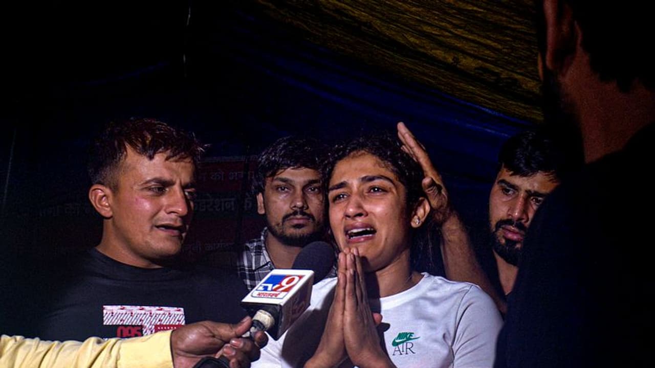 ఢిల్లీలోని జంతర్ మంతర్ వద్ద కొనసాగుతున్న రెజర్ల నిరసనలో బుధవారం అర్ధరాత్రి గందరగోళ పరిస్థితులు నెలకొన్నాయి. పోలీసులు, రెజర్లకు మధ్య తోపులాట జరిగింది. ఈ క్రమంలో పోలీసులు పలువురిని చితకబాదారు. దీంతో భారత అగ్రశ్రేణి రెజ్లర్ వినేశ్ ఫోగట్ ఉద్వేగానికి గురయ్యారు. ఏడుస్తూనే మీడియాతో మాట్లాడారు. ఇలాంటి రోజులు చూడటానికా తాము ఇన్ని పతకాలు గెలిచిందని ఆవేదన వ్యక్తం చేశారు. మద్యం మత్తులో ఇద్దరు రెజ్లర్లపై పోలీసు అధికారి దాడి చేశారని, అతడి సహచరులు చూస్తూ మూగ ప్రేక్షకులుగా మారారని ఆమె ఆరోపించారు.