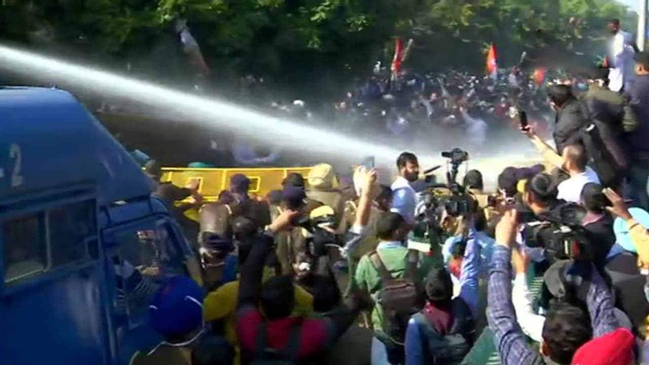 వాటర్ క్యానాన్లను ప్రయోగించడం ద్వారా ఆందోళనకారులను పోలీసులు చెదరగొట్టారు.కేంద్ర ప్రభుత్వం తీసుకొచ్చిన నూతన వ్యవసాయ చట్టాలను నిరసిస్తూ ఢిల్లీలో రైతులు ఆందోళనలు నిర్వహిస్తున్న విషయం తెలిసిందే.