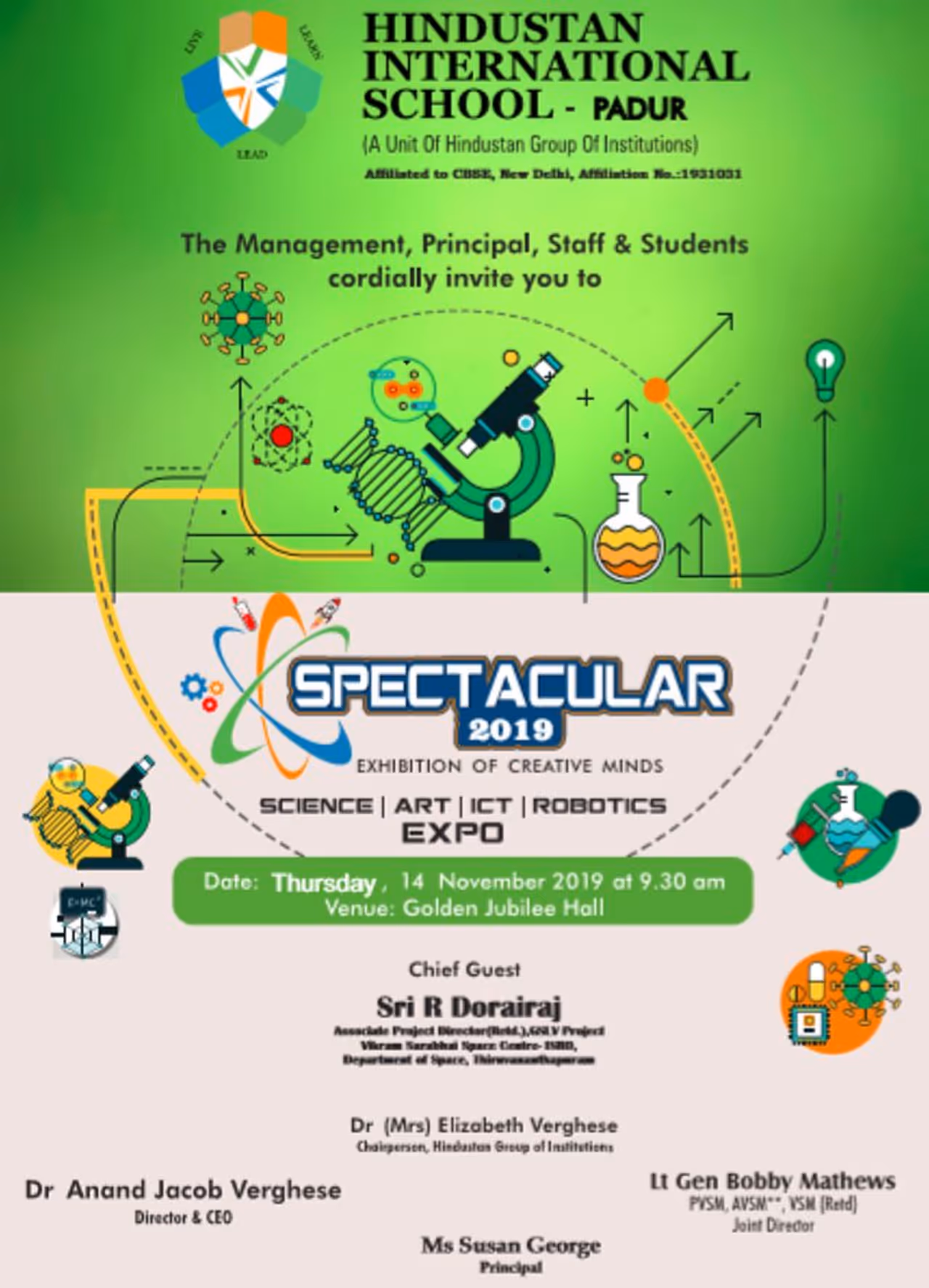పాడూర్లోని హిందూస్తాన్ ఇంటర్నేషన్ స్కూల్ విద్యార్ధుల కోసం నవంబర్ 14న సైన్స్, ఆర్ట్, క్రాఫ్ట్, రోబోటిక్స్, ఐసిటి ఎగ్జిబిషన్ను నిర్వహించారు