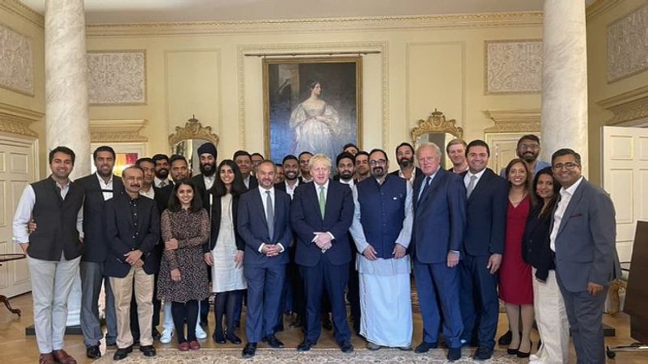 కేంద్ర ఎలక్ట్రానిక్స్, ఐటీ, స్కిల్ డెవలప్మెంట్ అండ్ ఎంట్రపెన్యూర్షిప్ శాఖ సహాయ మంత్రి రాజీవ్ చంద్రశేఖర్ (rajeev chandrasekhar) నేతృత్వంలోని ప్రతినిధుల బృందం బ్రిటన్ ప్రధాన మంత్రి బోరిస్ జాన్సన్తో భేటీ అయ్యింది. యూకేలోని ఇండియా గ్లోబల్ ఫోరమ్ సమావేశాల సందర్భంగా ఈ కలయిక జరిగింది. యూనికార్న్స్ అయిన Polygon, Koo, builder.ai , nyka, safexpay వంటి స్టార్టప్ లు ఈ ప్రతినిధుల బృందంలో వున్నాయి. న్యూఇండియా స్టార్ట్ప్ లు , ఇన్నోవేటర్ లను పరిచయడం చేయడంతోపాటు ఇన్నోవేషన్, టెక్నాలజీ సెక్టార్ లో భారతదేశ భవిష్యత్తుకు యూకే సహకారంపై చర్చించారు.