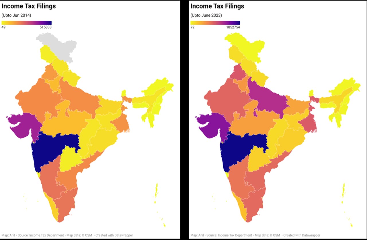 ఈశాన్య రాష్ట్రాలైన మణిపూర్, నాగాలాండ్, మిజోరం వంటి రాష్ట్రాల్లో కూడ 9 ఏళ్లలో ఆదాయ పన్ను దాఖలులో 20 శాతం వృద్ధి సాధించినట్టుగా మోడీ పేర్కొన్నారు.ఈ డేటా ఇండియా వృద్దిని సూచిస్తున్నట్టుగా ప్రధాని చెప్పారు.