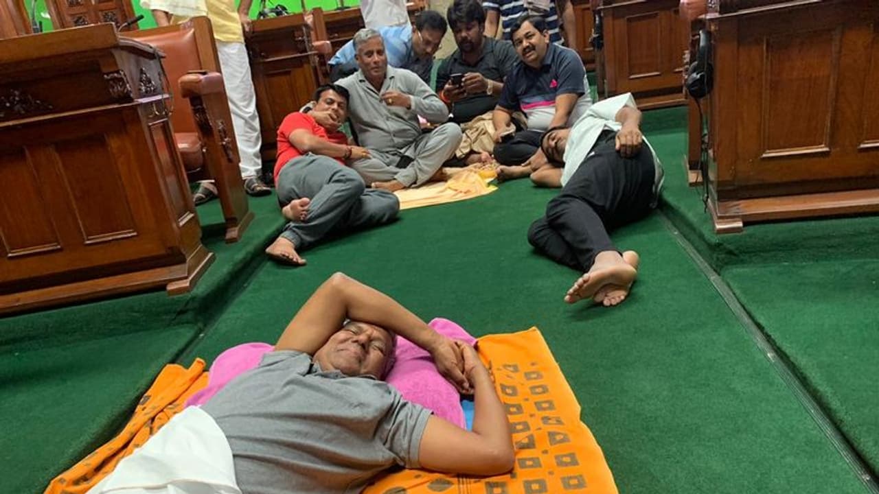 విశ్వాసపరీక్ష జరగకుండానే వాయిదాపడిన కర్ణాటక అసెంబ్లీ ఆందోళన చేపట్టిన బీజేపీ నేతలు రాత్రంతా అసెంబ్లీలోనే నిద్రించిన బీజేపీ నేతలు