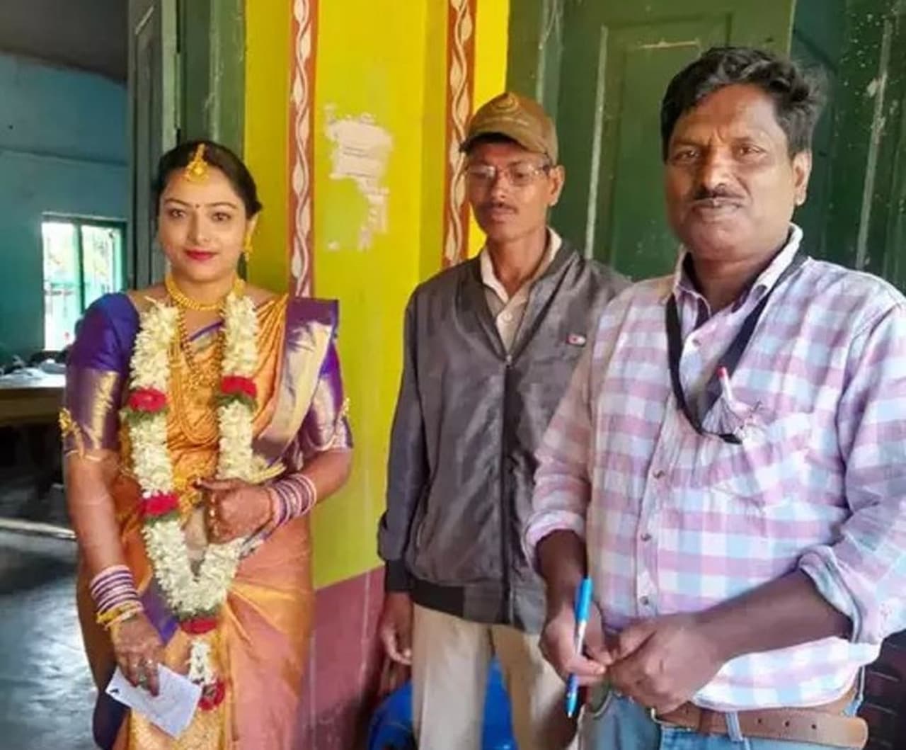 కర్ణాటక అసెంబ్లీ ఎన్నికల పోలింగ్ కొనసాగుతుంది. ఈరోజు ఉదయం 7 గంటలకు పోలింగ్ ప్రారంభం కాగా.. ప్రజలు ఓటు వేసేందుకు పెద్ద ఎత్తున తరలిస్తున్నారు. పలు పార్టీలకు చెందిన నేతలు, సినీ ప్రముఖులు కూడా ఓటు హక్కును వినియోగించుకుంటున్నారు. అయితే ఓ వధువు పెళ్లి దుస్తుల్లో వచ్చి ఓటు హక్కును వినియోగించుకున్నారు. ఈ ఘటన చిక్కమగళూరు జిల్లాలో చోటుచేసుకుంది. చిక్కమగళూరు జిల్లా ముదిగెరె అసెంబ్లీ నియోజకవర్గంలోని మాకోనహళ్లిలోని పోలింగ్ బూత్ నెంబర్ 165లో ఓ వధువు తన ఓటు వేసింది. అయితే ఓవైపు పెళ్లి వేడుక ఉన్నప్పటికీ.. బాధ్యతగా పోలింగ్ బూత్కు వచ్చి ఓటు హక్కు వినియోగించుకున్న వధువుపై పలువురు ప్రశంసలు కురిపిస్తున్నారు.