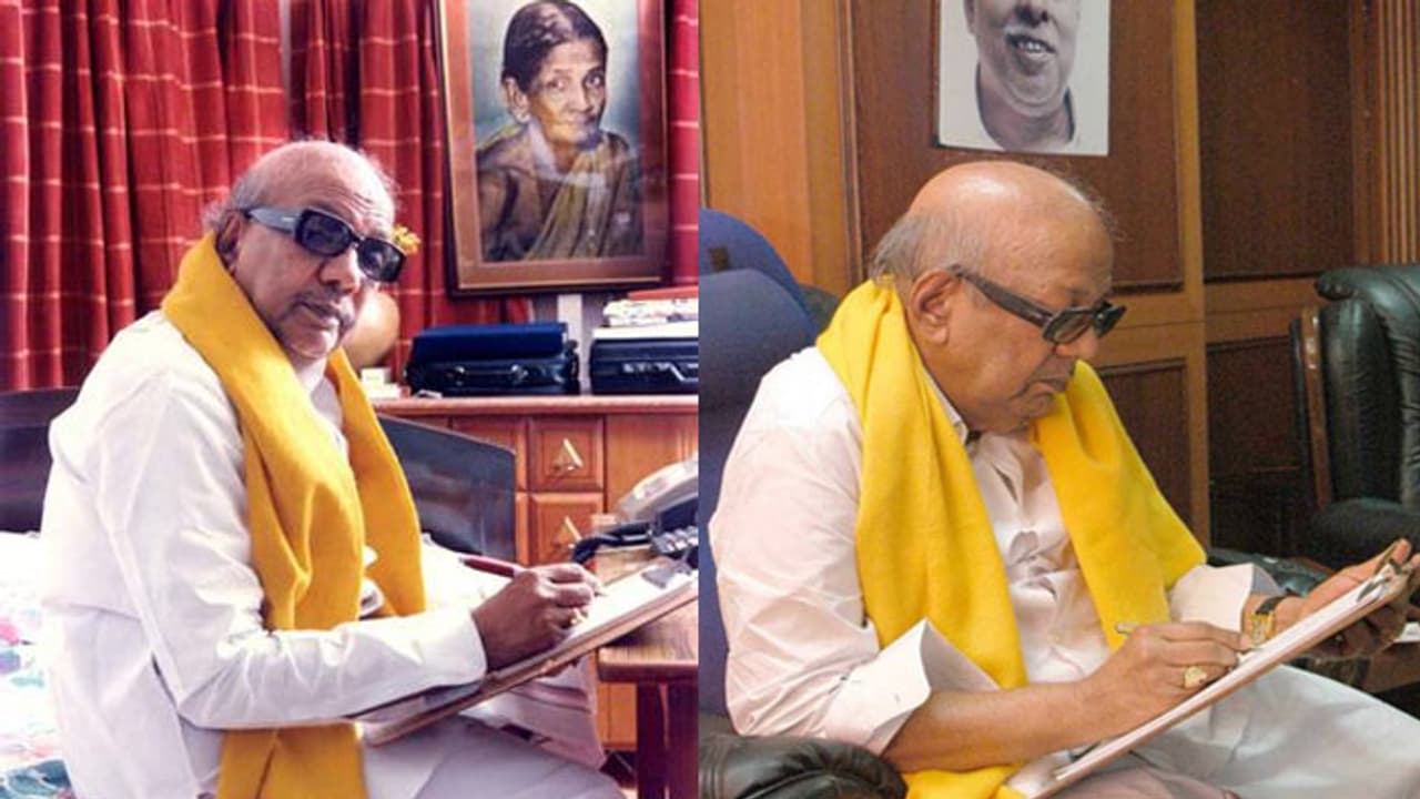 ద్రవిడ ఉద్యమంలో భాగస్వామిగా, హేతువాద, సామ్యవాద సిద్ధాంతాల పట్ల ఆకర్షితులైన కరుణానిధి తన రచనల్లో ఆ భావాలకు ప్రాధాన్యం ఇచ్చే వారు. చారిత్రక, సామాజిక సంస్కరణలను ప్రోత్సహిస్తూ ఆయన రచనలు సాగాయి. 14వ ఏటనే నాటకాలు వేయడం, కవిత్వం రాయడం ప్రారంభించారు. అయితే స్క్రిప్ట్ రాయడంతో పాటు నాటకాల్లో కూడా నటించాలని.. ద్రావిడ నడిగర్ కళగం వారు షరతు పెట్టడంతో తప్పనిసరి పరిస్థితుల్లో నాటకాల్లో నటించారు.