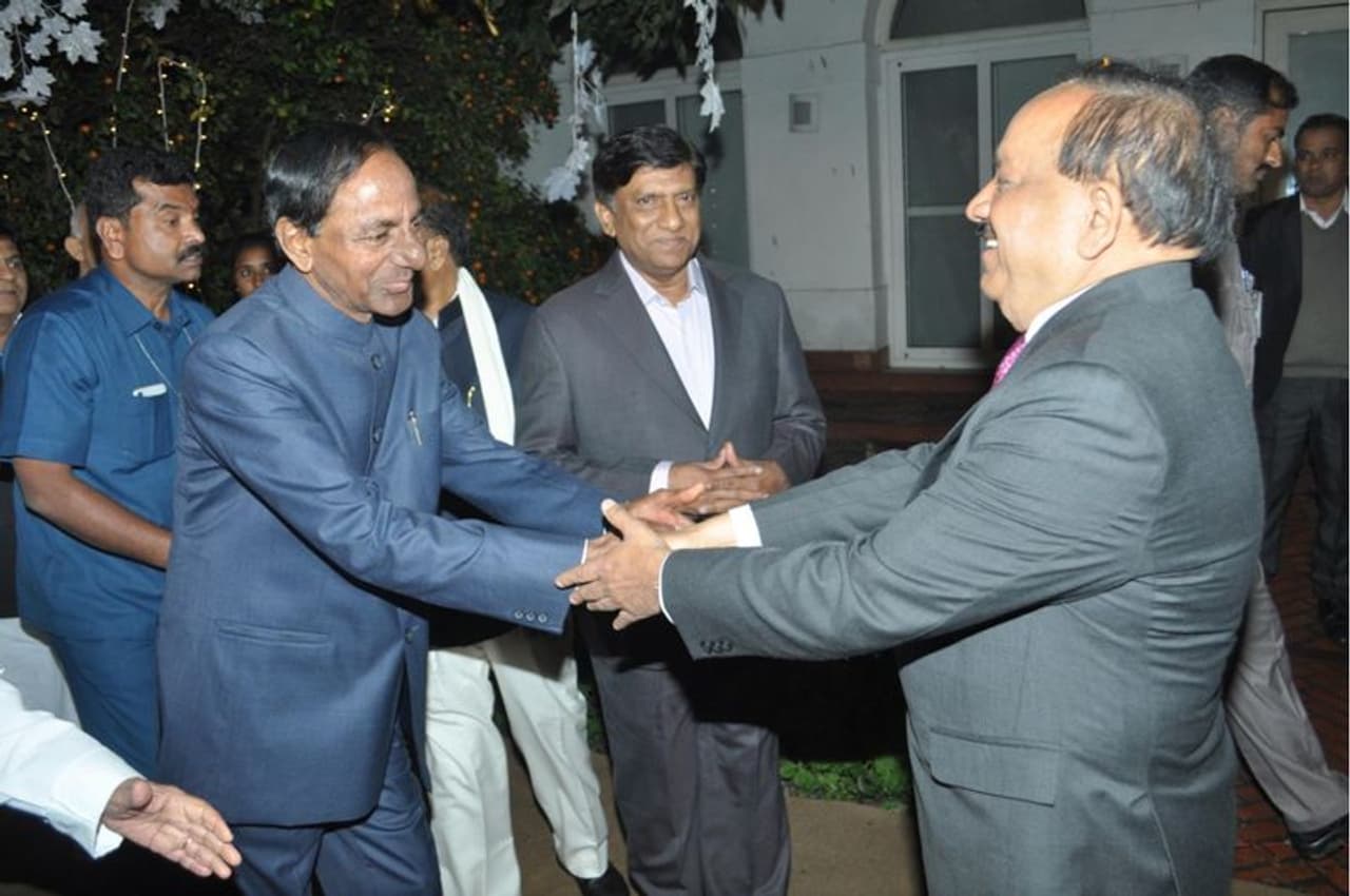కేంద్రమంత్రి హర్షవర్ధన్ కుమారుడి పెళ్లిలో కేసీఆర్ (ఫొటోలు)
