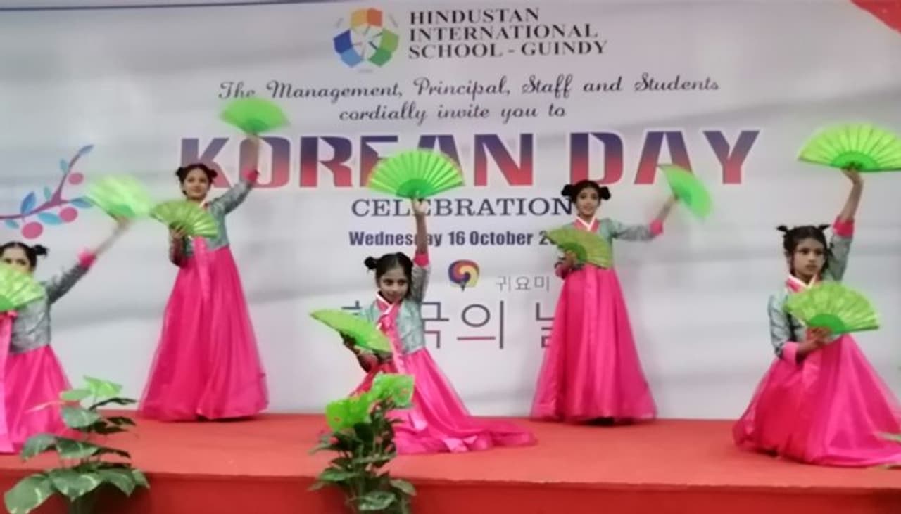 చెన్నై గుండీలో ఉన్న హిందుస్థాన్ ఇంటర్నేషన్ స్కూల్లో కొరియన్ డే వేడుకలు అక్టోబర్ 16న ఘనంగా జరిగాయి. ఈ కార్యక్రమానికి ముఖ్య అతిథిగా రిపబ్లిక్ ఆఫ్ కొరియా డిప్యూటీ కాన్సుల్ జనరల్ ఎం హంగ్ యుప్ లీ హాజరయ్యారు.