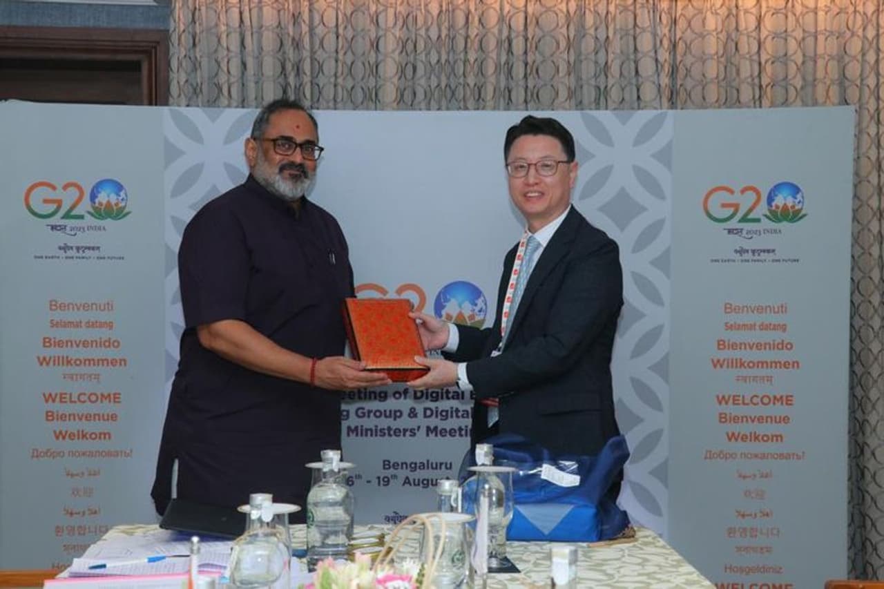 చివరిగా దక్షిణ కొరియా ఐసీటీ, సైన్స్ మినిస్ట్రీ డిప్యూటీ మినిస్టర్ డాక్టర్ జిన్ బే హోంగ్తో జరిగిన సమావేశంలో ఉభయ దేశాల మధ్య గల బలమైన సంబంధాలపై చర్చించారు. ఈ రెండు దేశాల మధ్య భాగస్వామ్యం ప్రపంచం మొత్తం మీద బలమైన ప్రభావం చూపగలదని కేంద్రమంత్రి రాజీవ్ చంద్రశేఖర్ అన్నారు.