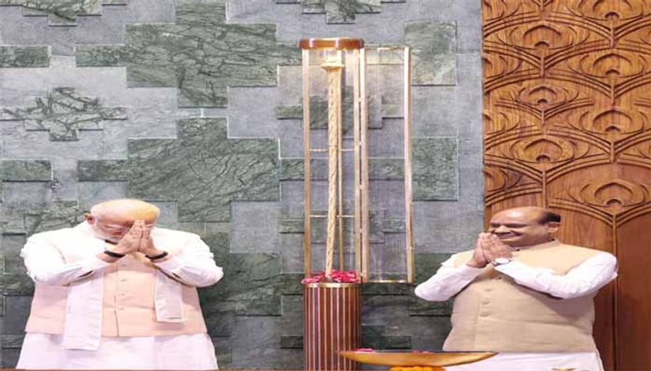 న్యూఢిల్లీ: కొత్త పార్లమెంట్ భవనాన్ని ప్రధానమంత్రి నరేంద్ర మోడీ ఆదివారం నాడు ఉదయం ప్రారంభించారు. కొత్త పార్లమెంట్ భవన ప్రారంభోత్సవ కార్యక్రమం ఇవాళ ఉదయం 07:15 గంటల నుండి ప్రారంభమైంది. ఇవాళ ఉదయం తొమ్మిది గంటలకు స్పీకర్ చాంబర్ సమీపంలో రాజదండాన్ని ప్రధాని నరేంద్ర మోడీ ప్రతిష్టించారు.