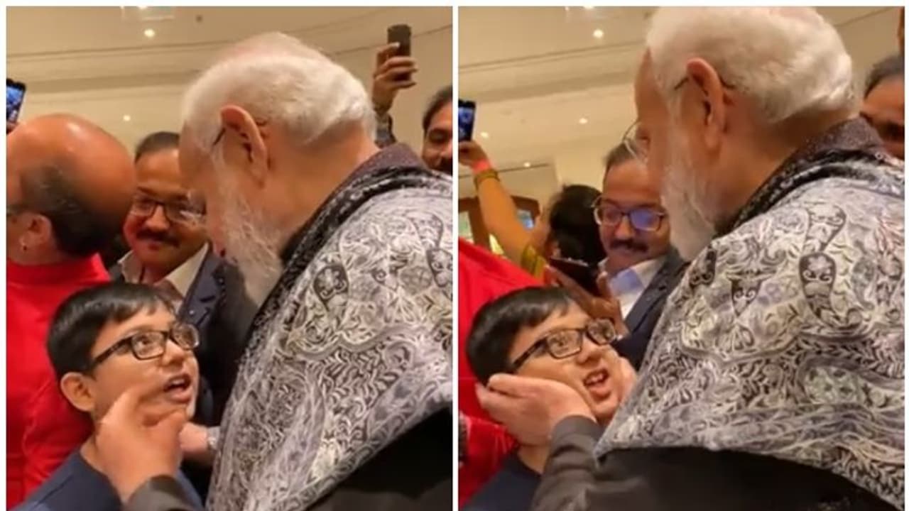 న్యూఢిల్లీ: భారత ప్రధాని సోమవారం జర్మనీలో ప్రవాస భారతీయులతో ఇంటరాక్ట్ అయ్యారు. ఈ సందర్భంగా ఆయన వారితో చాలా క్లోజ్గా మూవ్ అయ్యారు. అందులో కొందరు ప్రధానితో నేరుగా మాట్లాడే అవకాశాన్ని కూడా పొందరు. కాగా, ఓ పిల్లాడు ప్రధాని మోడీకి దేశ భక్తి పాట పాడి వినిపించాడు. ఆ పిల్లాడి పాటను ఆసక్తిగా విన్న ప్రధాని మోడీ.. మధ్యలోనే తన చిటికెలతో పిల్లాడికి మరింత హుషారు తెప్పించాడు. దీంతో ఆ హోటల్ హాల్ మొత్తం ఆ పాట వింటూ ఎంజాయ్ చేశారు.
