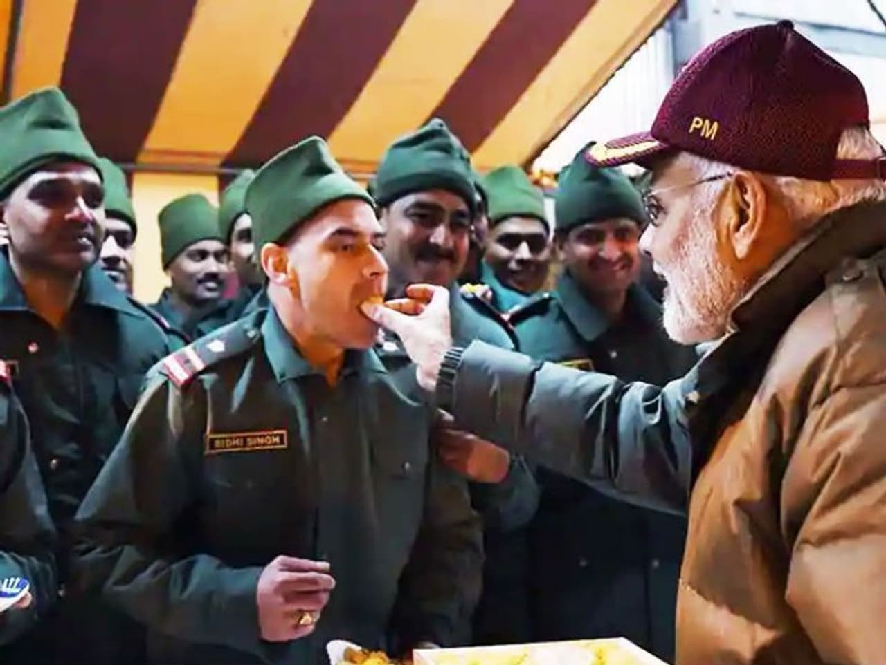 ప్రతికూల వాతావరణంలోనూ మోడీ వెనుకంజ వేయలేదు. జవాన్లకు తన చేతుల మీదుగా స్వీట్ బాక్స్లను అందజేస్తున్నారు. దేశం మొత్తం వారి వెంట ఉందనే సందేశాన్ని జవాన్లకు ఇవ్వడానికే తాను వారితో కలిసి దీపావళి వేడుకలను జరుపుకొంటున్నానని మోడీ చాలాసార్లు చెప్పారు.