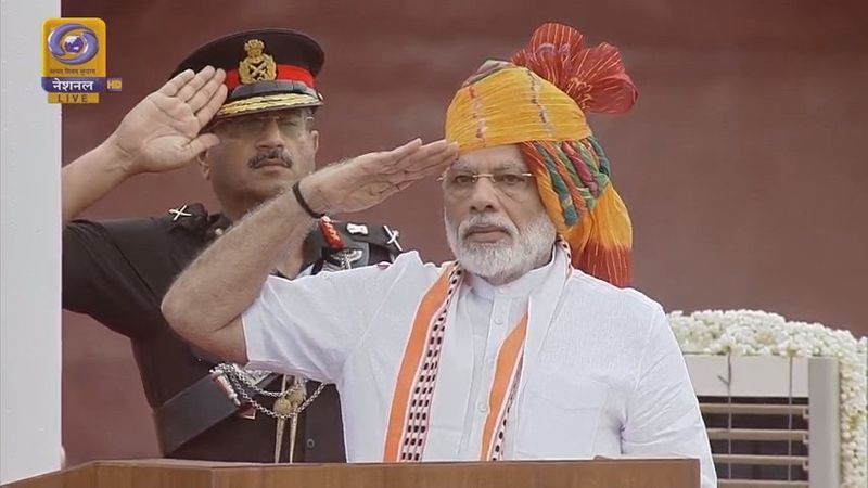 అనంతరం అక్కడ నుంచి నేరుగా ఎర్రకోటకు చేరుకున్నారు. ఎర్రకోటలో అశేష జనవాహిని, కట్టుదిట్టమైన భద్రతల నడుమ మోదీ జాతీయ జెండాను ఆవిష్కరించారు. అనంతనం జాతిని ఉద్దేశించి మోదీ ప్రసంగించారు.