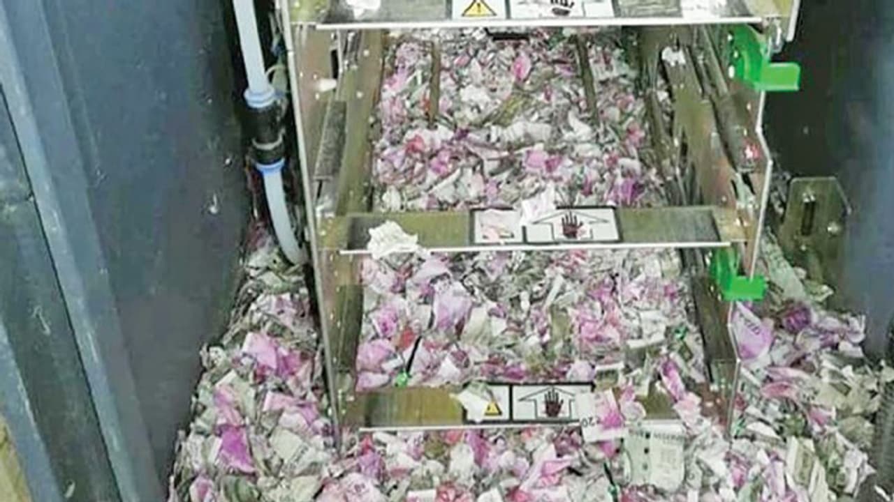 ఏటిఎం మెషీన్లో రూ.12 లక్షల డబ్బు ఉన్నప్పటికీ, కస్టమర్లు డెబిట్ కార్డు ద్వారా విత్డ్రా బయటకు రాకపోవడంతో వారు బ్యాంకు అధికారులకు ఫిర్యాదు చేశారు. విషయం తెలుసుకున్న టెక్నీషియన్లు మెషీన్ ఓపెన్ చూసిచూడగానే అవాక్కయ్యారు. మెషీన్ నిండా చిరిగిపోయిన కరెన్సీ నోట్లు కనిపించాయి. చిరిగిన నోట్ల మధ్యలో ఓ చనిపోయిన ఎలుక కూడా ఉంది. ఏటిఎం మెషీన్ వెనుక వైర్ల దగ్గరున్న రంధ్రం గుండా ఎలుకలు ప్రవేశించి ఉంటాయని భావిస్తున్నారు.