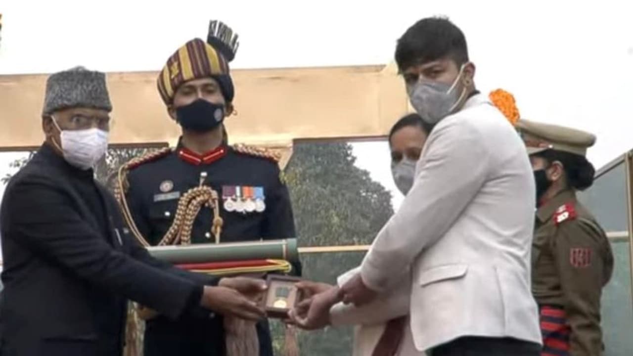 Republic Day 2022 : జమ్మూ కాశ్మీర్ పోలీస్ (jammu kashmir police) అసిస్టెంట్ సబ్ ఇన్స్పెక్టర్ (assistant sub inspector) బాబు రామ్కు రాష్ట్రపతి రామ్నాథ్ కోవింద్ బుధవారం మరణానంతరం అశోక్ చక్ర (ashok chakra) ను ప్రదానం చేశారు. రాష్ట్రపతి చేతుల మీదుగా బాబు రామ్ భార్య రీనా రాణి, కుమారుడు మాణిక్ ఈ అవార్డును అందుకున్నారు. ఆగస్ట్ 29, 2020న శ్రీనగర్లో (srinagar) జరిగిన ఆపరేషన్లో ASI బాబూ రామ్ ముగ్గురు ఉగ్రవాదులను హతమార్చారు. ఆయన ఉగ్రవాదులను నిర్మూలించడంలో శౌర్యాన్ని, ధైర్యాన్ని ప్రదర్శించారు. దేశం కోసం ప్రాణాలు అర్పించారు.