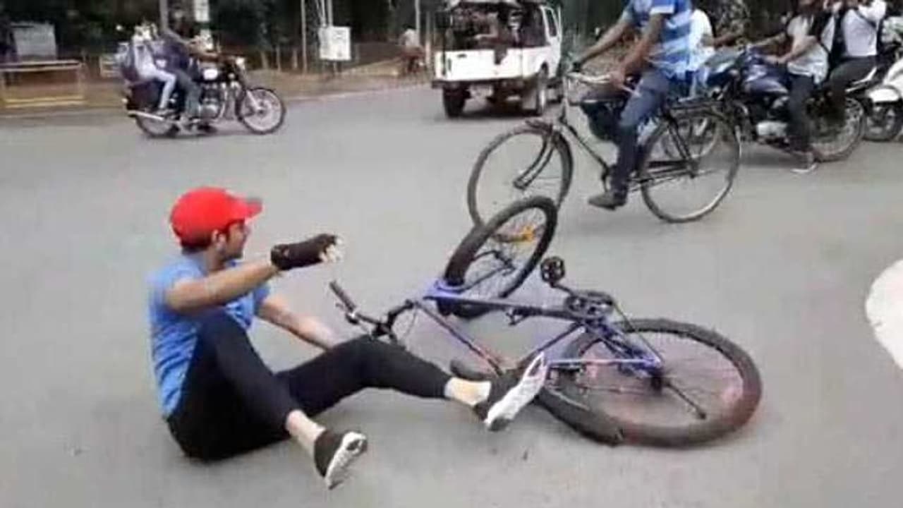 అసలేం జరిగిందంటే... కేంద్ర ప్రభుత్వం పెట్రోల్, ఢీజిల్ ధరలను ఇష్టం వచ్చినట్లు పెంచడాన్ని నిరసిస్తూ మాజీ మంత్రి, రాష్ట్రీయ జనతాదళ్ నాయకుడు తేజస్వి యాదవ్ సైకిల్ ర్యాలీ కి చేపట్టారు. ఇందులో భాగంగా ఆయన కార్యకర్తలతో కలిసి సైకిల్ ని స్వయంగా నడుపుకుంటూ వెడుతుండగా సెక్యూరిటీ వాహనాలు ఆయన్ని ఫాలో అయ్యాయి. ఈ క్రమంలో కాస్త స్పీడ్ గా వెళుతున్న ఆయన సైకిల్ ఓ మలుపు వద్ద సెక్యూరిటీ వాహనాన్ని ఢీ కొట్టింది. దీంతో తేజస్వి కిందపడిపోయాడు.