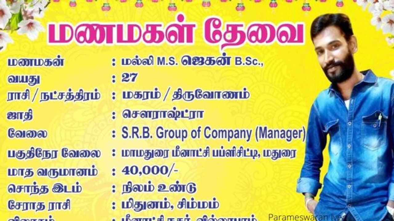 వివరాల్లోకెళ్తే.. మధురైలోని విల్లుపురంలో నివసిస్తున్న జగన్ (27) యువకుడు.. గత 4 సంవత్సరాలుగా తనకు కావాల్సిన జీవిత భాగస్వామి కోసం వెతుకుతున్నాడు. ఈ క్రమంలో నానా ప్రయత్నాలు చేశాడు. కానీ.. అతనికి సరైన వధువు ఆచూకీ మాత్రం లభించలేదు. దీంతో.. విసిగిపోయిన ఆ యువకుడు.. తన కాబోయే భాగస్వామిని వెతకడానికి నూతన మార్గాన్ని ఎంచుకున్నాడు. అనుకున్నదే తాడువుగా.. జీవిత భాగస్వామి కావాలంటూ.. వాల్ పోస్టర్లను ముద్రించాడు. మరుసటి రోజు.. నగరమంతటా అంటించాడు. ప్రస్తుతం మదురై నగర కూడళ్లలో ‘పెళ్లికూతురు కావాలి’ అంటూ పోస్టర్లు దర్శమిస్తున్నాయి.