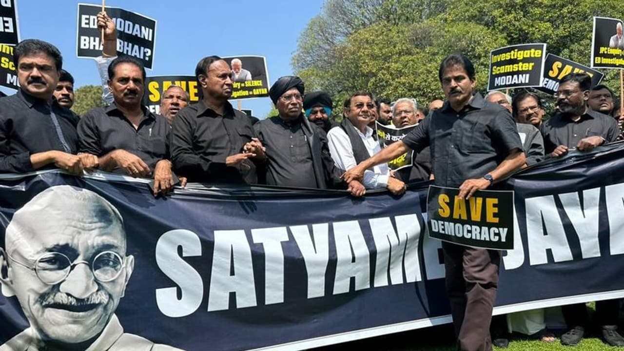 కాగా, రాహుల్ గాంధీపై అనర్హత వేటు వేయడాన్ని నిరసిస్తూ కాంగ్రెస్ ఎంపీలు నల్ల చొక్కాలు ధరించి నిరసన తెలిపారు. తెలంగాణలో కాంగ్రెస్ కు ప్రత్యర్థిగా ఉన్న ముఖ్యమంత్రి కేసీఆర్ నాయకత్వంలోని బీఆర్ఎస్, శివసేన (ఉద్ధవ్ బాలాసాహెబ్ ఠాక్రే)తో కలిసి 'నల్ల చొక్కా' నిరసనలో పాల్గొంది. ఈ సమావేశంలో కాంగ్రెస్, డీఎంకే, ఎస్పీ, జేడీయూ, బీఆర్ఎస్, సీపీఎం, ఆర్జేడీ, ఎన్సీపీ, సీపీఐ, ఐయూఎంఎల్, ఎండీఎంకే, కేసీ, టీఎంసీ, ఆర్ఎస్పీ, ఆప్,జమ్మూకాశ్మీర్ ఎన్సీ, శివసేన (యూబీటీ)లు పాలుపంచుకున్నాయి.