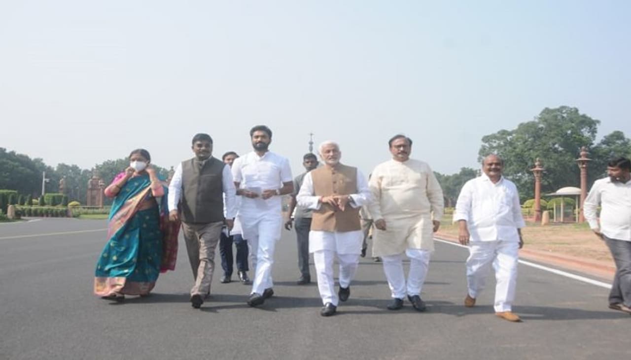 న్యూఢిల్లీ : ఆంధ్రప్రదేశ్ రాష్ట్ర ప్రతిష్టను మంటగలుపుతూ, ముఖ్యమంత్రి వైయస్ జగన్ మోహన్ రెడ్డిపై అసభ్య పదజాలంతో వ్యక్తిగత విమర్శలకు పాల్పడుతున్న ప్రతిపక్ష తెలుగు దేశం పార్టీ గుర్తింపును రద్దు చేయాలని కోరుతూ.. ఈరోజు ఢిల్లీలో వైయస్సార్ కాంగ్రెస్ పార్టీ ఎంపీల బృందం, పార్లమెంటరీ పార్టీ నాయకుడు వి. విజయసాయి రెడ్డి నాయకత్వంలో రాష్ట్రతి రామ్ నాథ్ కోవింద్ ను కలిసి వినతపత్రం సమర్పించారు.