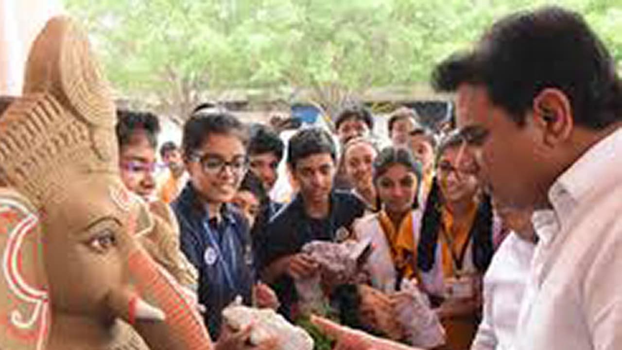 ఈ సందర్భంగా మంత్రి కేటీఆర్ మట్లాడుతూ.. ఈ ఏడాది వినాయకచవితికి తెలంగాణ ప్రభుత్వం రెండులక్షల మట్టి గణేశుని ప్రతిమలను నగరంలో పంచిపెట్టనున్నట్లు చెప్పారు. కాలుష్యాన్ని అరికట్టేందుకు పోల్యూషన్ కంట్రోల్ బోర్డు ఆధ్వర్యంలో ప్రత్యేకంగా స్టాల్లు ఏర్పాటు చేసి.. వినాయక విగ్రహాలను పంచిపెడతామని ఆయన చెప్పారు. అదేవిధంగా జీహెచ్ఎంసీ కూడా వినాయక నిమజ్జన ఏర్పాట్లు చేసినట్లు చెప్పారు. 15 అడుగులు కన్నా తక్కువ ఎత్తుగల వినాయక ప్రతిమలను హుసేన్ సాగర్ లో కాకుండా వేరే ప్రత్యేక ట్యాంకుల్లో నిమజ్జనం చేసేలా ఏర్పాట్లు చేశారన్నారు. ఈ ఏడాది మరో 15 ట్యాంకులను అదనంగా ఏర్పాటుచేసినట్లు కేటీఆర్ చెప్పారు. ఇప్పటికే 10 ట్యాంకులు ఉండగా.. అదనంగా వీటిని ఏర్పాటు చేసినట్లు తెలిపారు.